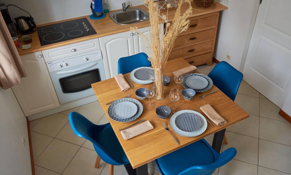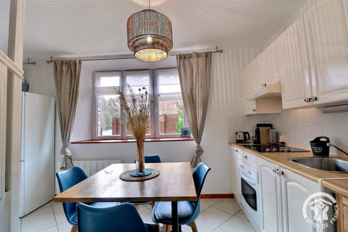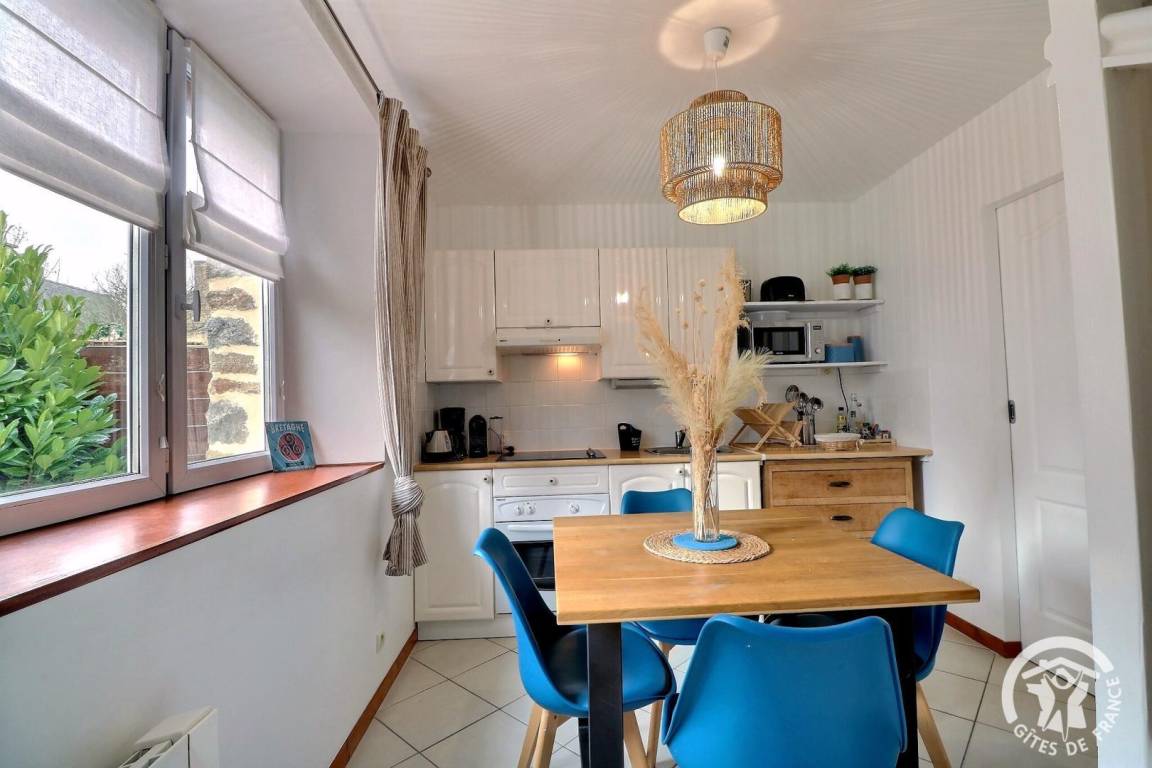 Dieses unabhängige Ferienhaus ist ein echter Ort der Ruhe und bietet eine Terrasse und einen privaten, umzäunten Garten, der an das Haus des Eigentümers angrenzt. Dieses komplett renovierte und möblierte, 55 m² große Cottage bietet Ihnen ein komfortables, modernes und helles Interieur mit so friedlichen blauen Akzenten. Im Erdgeschoss finden Sie ein Wohnzimmer mit einer ausgestatteten Küche und einem Essbereich, ein Wohnzimmer und ein Badezimmer mit WC, Staubsauger. Eine schöne Terrasse mit Tisch, Stuhl und Grill. Im Obergeschoss finden Sie zwei Schlafzimmer mit jeweils einem 140 cm breiten Bett, das bei Ihrer Ankunft bezogen ist.