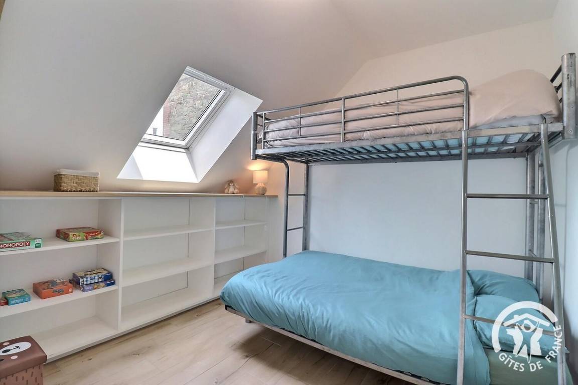 – ein Schlafzimmer mit zwei Etagenbetten (140 x 190 cm unten und 80 x 190 cm oben)