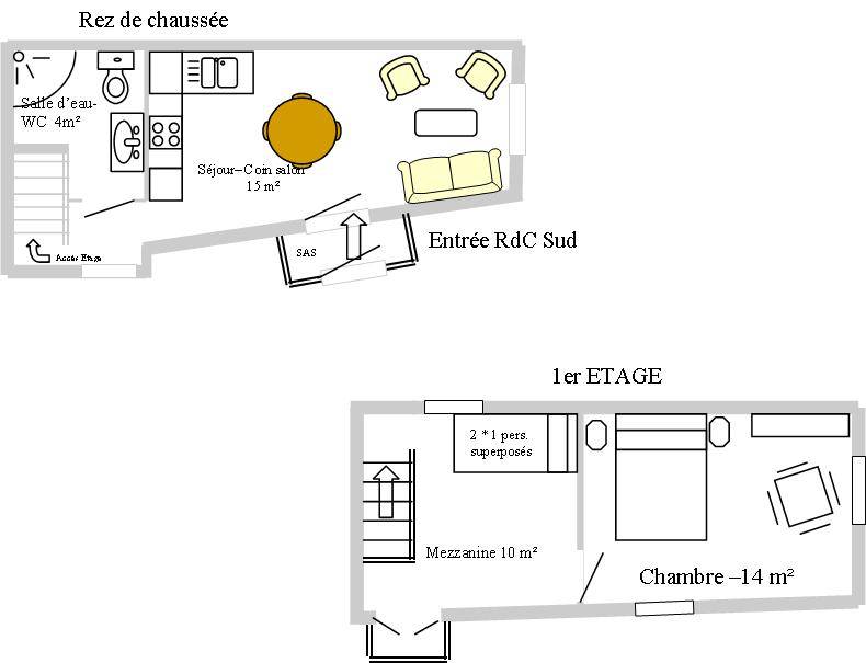 45 m² Gîte ∙ 2 Schlafzimmer ∙ 4 Gäste