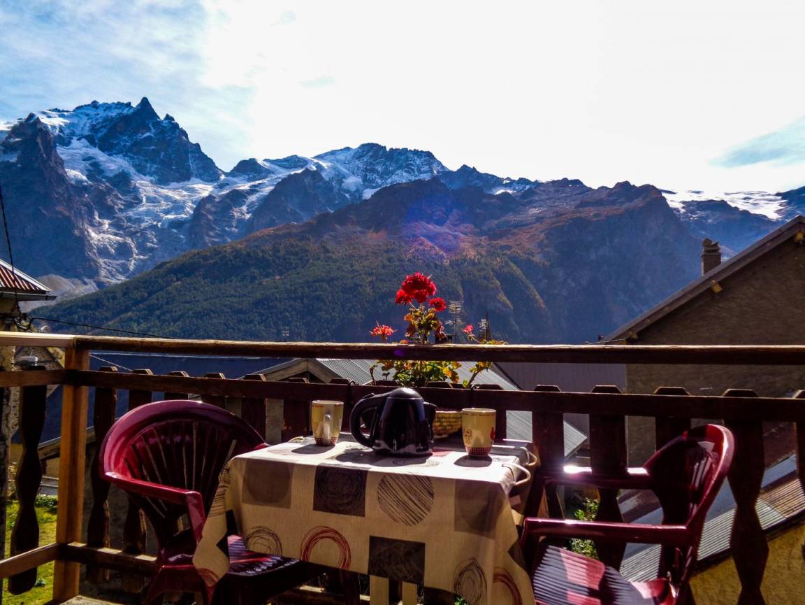 „Accueil et logement parfait où nous avons passé 15 jours magnifiques! Localisation parfaite pour découvrir la région à pied, en voiture, à vélo ou en rafting! Le petit plus non négligeable le petit déjeuner et le dîner sur le balcon avec vue imprenable sur les glaciers de la Meije!“