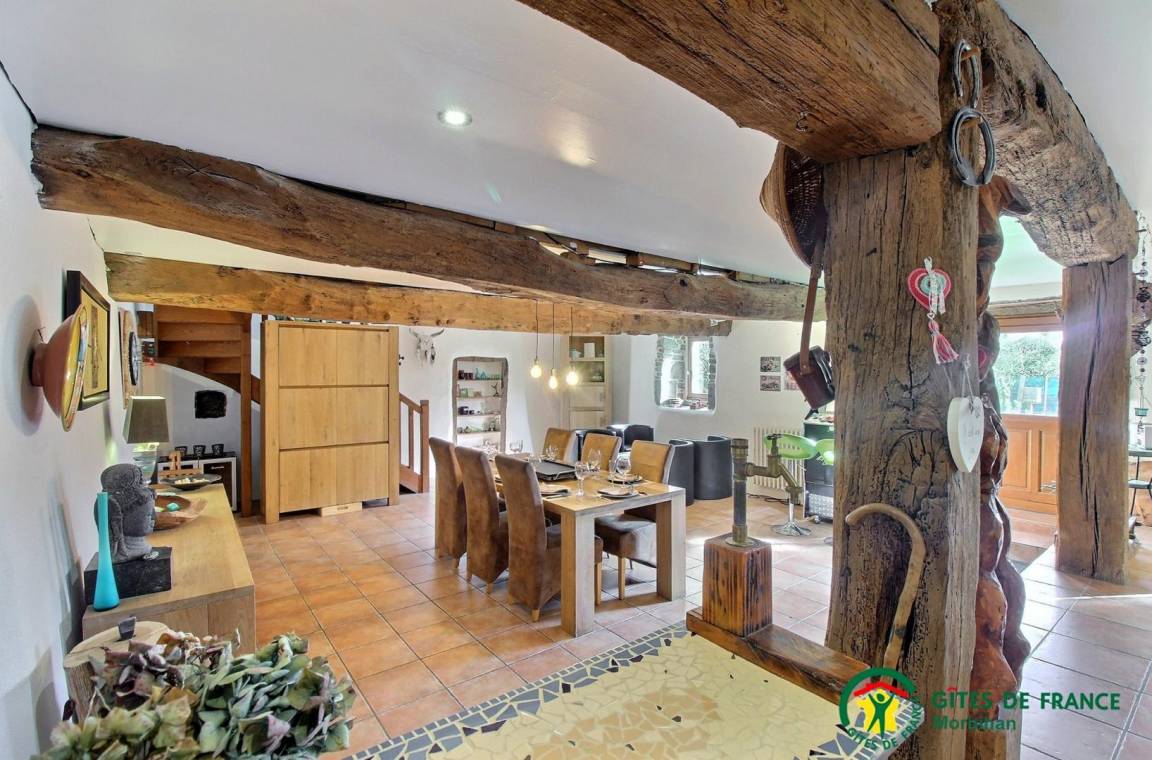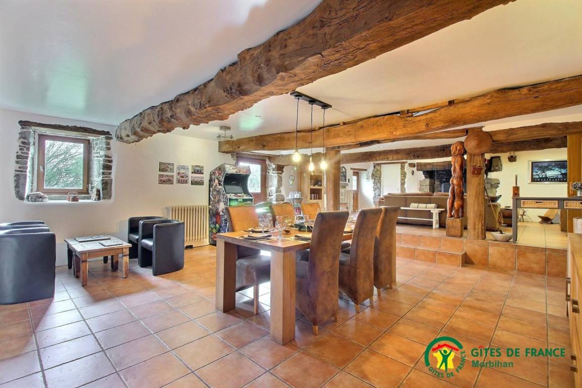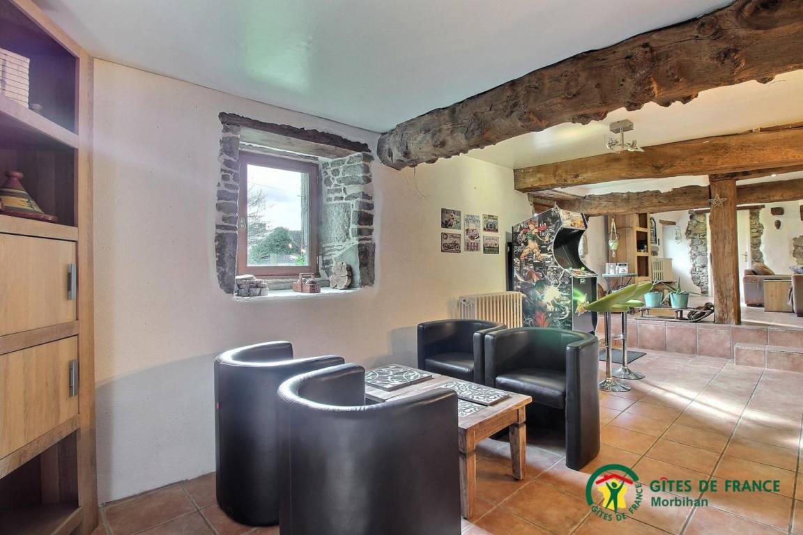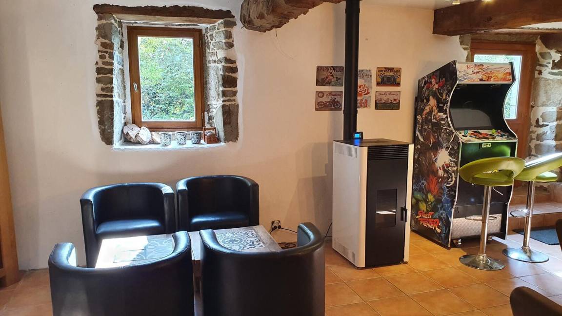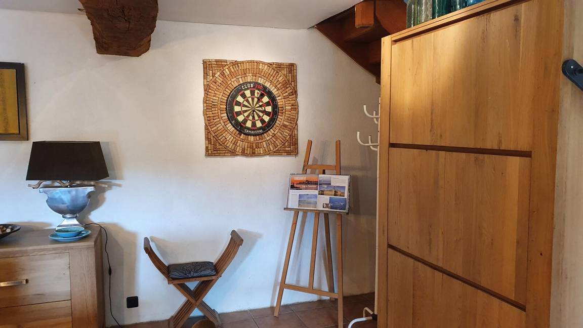 Diese Ferienwohnung ist ideal für eine große Familie oder eine Gruppe von Freunden. Hier werden Sie das große Wohnzimmer und die geräumigen Schlafzimmer zu schätzen wissen. Im Erdgeschoss: Sie haben ein großes Wohn- / Esszimmer mit Kamin mit typischer regionaler Dekoration und ein Arcade-Spielterminal sowie eine voll ausgestattete Küche. Oben: eine Landung führt zu 3 Schlafzimmer: zwei Dreifach Schlafzimmer (jeweils mit 1 Doppelbett und 1 Einzelbett), eine mit einem angrenzenden Duschbad / WC, ein Schlafzimmer für vier Personen (1 Doppelbett und 2 Betten in 90 einschließlich 1 Etagen ) und ein Badezimmer mit Toilette. Draußen: eine private Westterrasse mit Schotter, Gartenmöbeln und Grill, ein angrenzender Gemeinschaftsgarten auf einem geschlossenen Grundstück mit Bäumen, Hühnerstall, Bouleplatz und Gemüsegarten. Ferienhaus neben der Unterkunft der Eigentümer und ein Studio zur saisonalen Vermietung. Gemeinsamer Parkplatz vor dem Grundstück. Keine Spülmaschine.