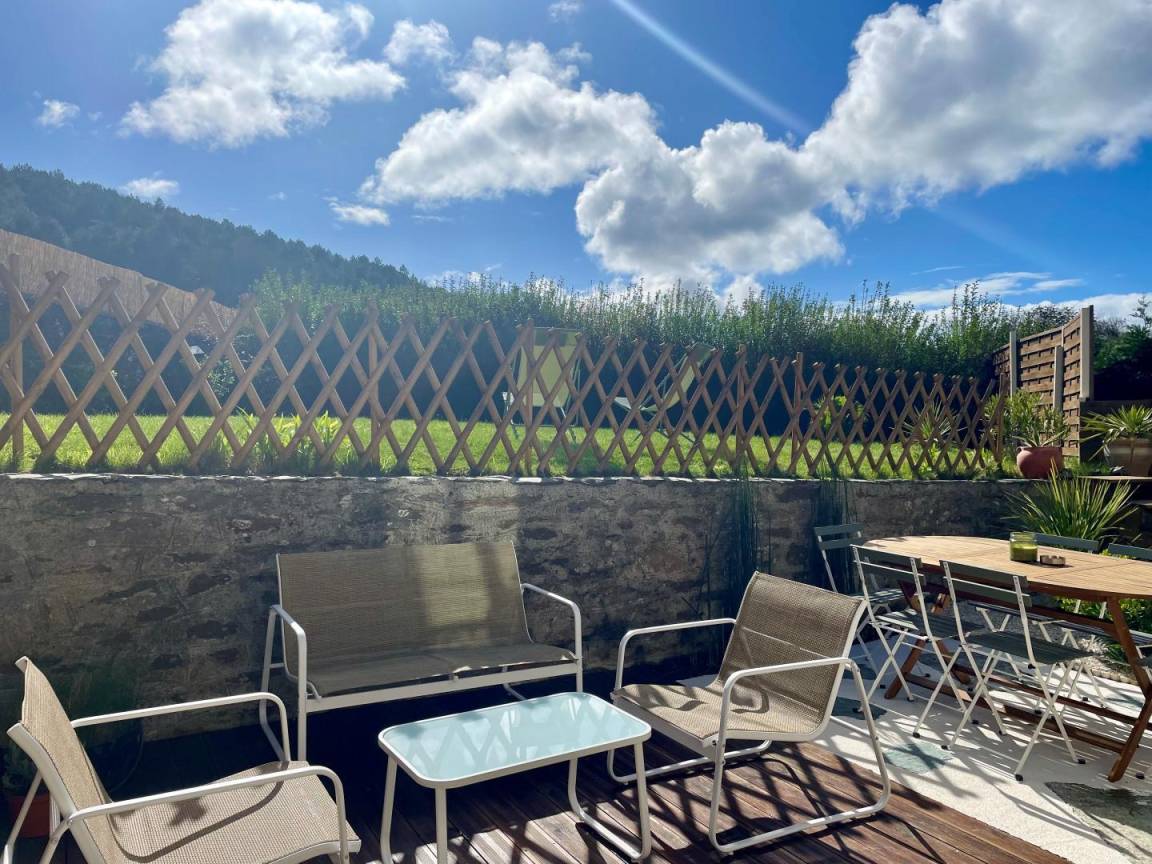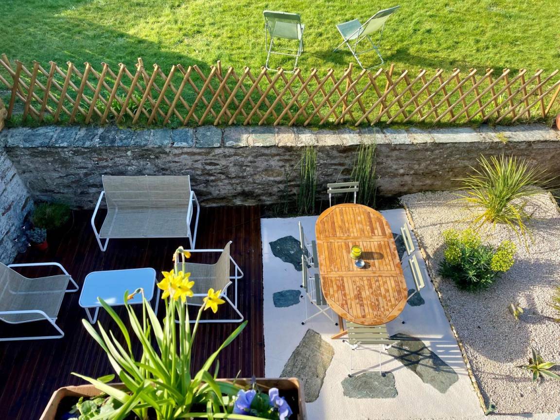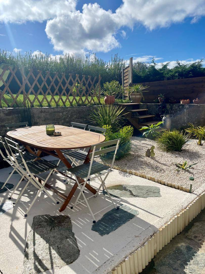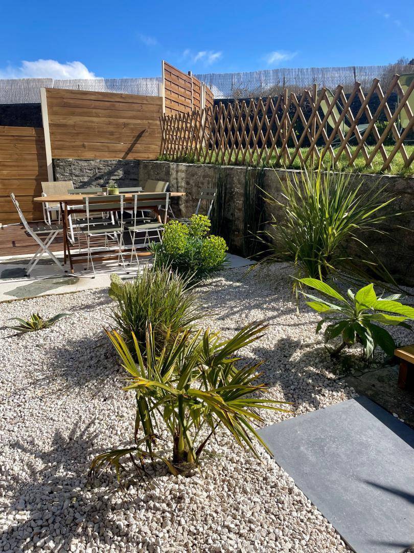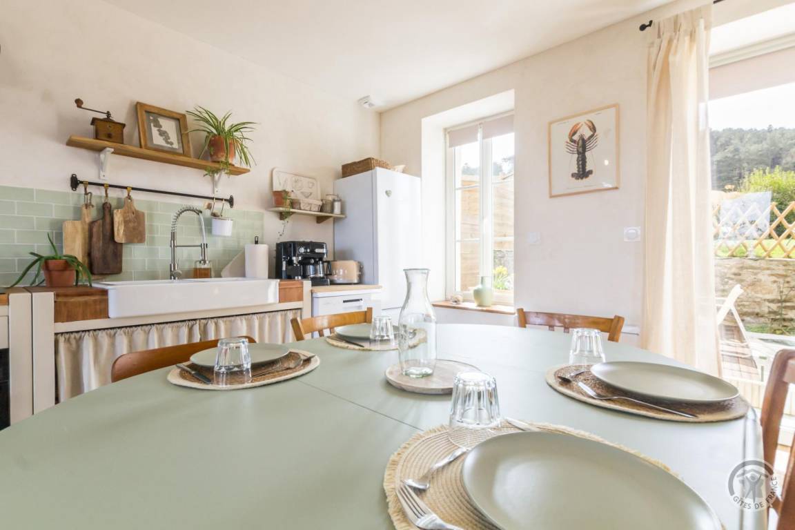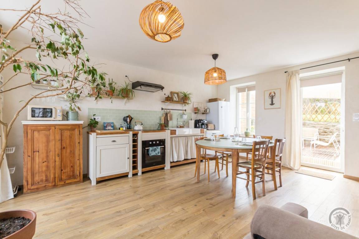 Doppelhaushälfte neben einem anderen Mietobjekt. Wohnzimmer (TV, ADSL-Internet, Bibliothek) mit offener Küche (Backofen, Induktionskochfeld, Mikrowelle, Kühlschrank, Gefrierschrank, Espressomaschine, Geschirrspüler), Duschbad mit WC (ebenerdige Dusche, 2 m Deckenhöhe). Im ersten Stock: Schlafzimmer 1 (Bett 160x200 cm + Bett 90x200 cm) mit Meerblick. Im zweiten Stock: Schlafzimmer 2 auf einer Galerie (zwei Betten 80x200 cm, die zusammengestellt werden können). Babyausstattung auf Anfrage. Bettwäsche und Handtücher werden gestellt. Die Betten sind bei Ankunft bezogen. Reinigungsservice inklusive. Elektrische Heizung inklusive. Alle Nebenkosten inklusive. Privater, umzäunter Garten. Wegerecht für die Eigentümer über den nach Norden ausgerichteten Vorgarten. Holzterrasse. Gartenmöbel. Sonnenliegen. Grill. Privater, umzäunter Innenhof. Nebengebäude mit Waschküche (Waschmaschine, Wäschetrockner).
