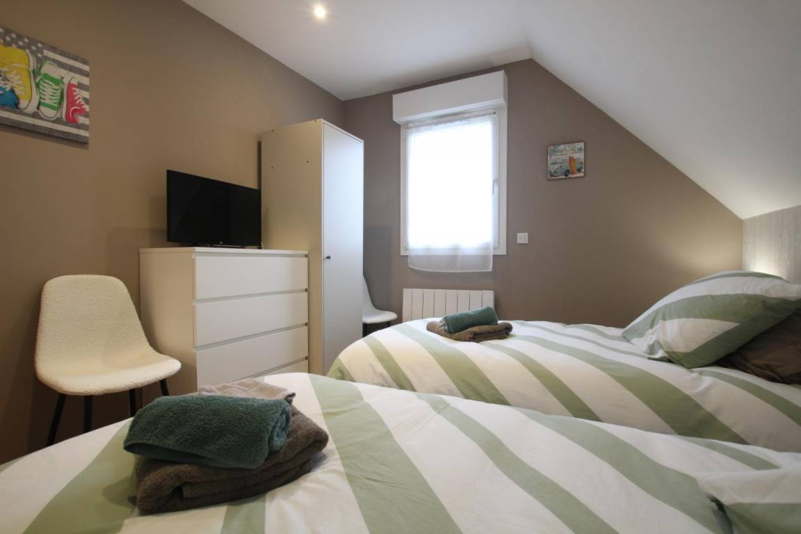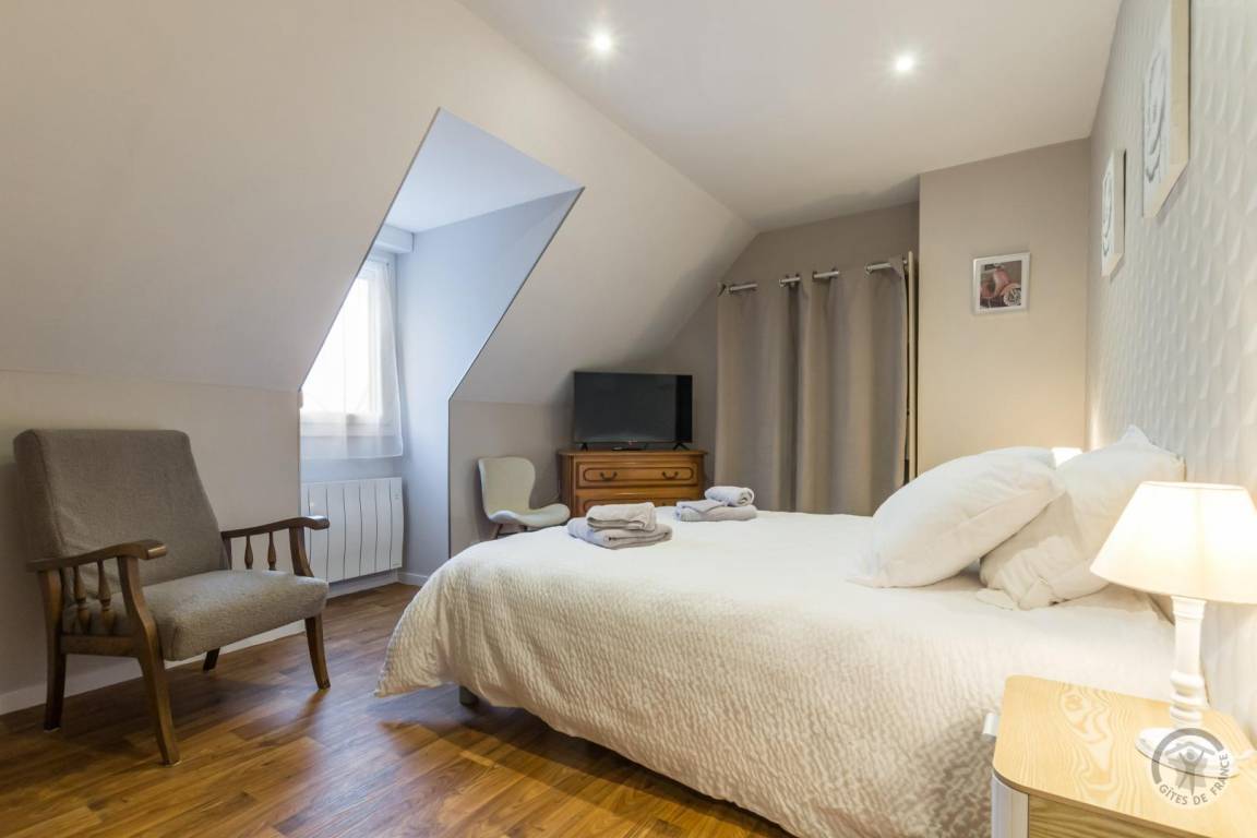 „Nous avons passé un très agréable séjour: Une propriétaire aux petits soins avec un panier garnie en guise de bienvenue, logement refait à neuf avec beaucoup de goût, d'une propreté irréprochable et tout équipé pour passer de bonnes vacances. Le plus: Le bureau avec des fauteuils très confortables pour des pauses au calme. Idéalement situé pour visiter la Normandie, du Mont Saint Michel jusqu'aux plages du débarquement. Un vrai coup de cœur pour la visite du sous marin "Le Redoutable" à la Cité de la mer. Une magnifique région à refaire…“
