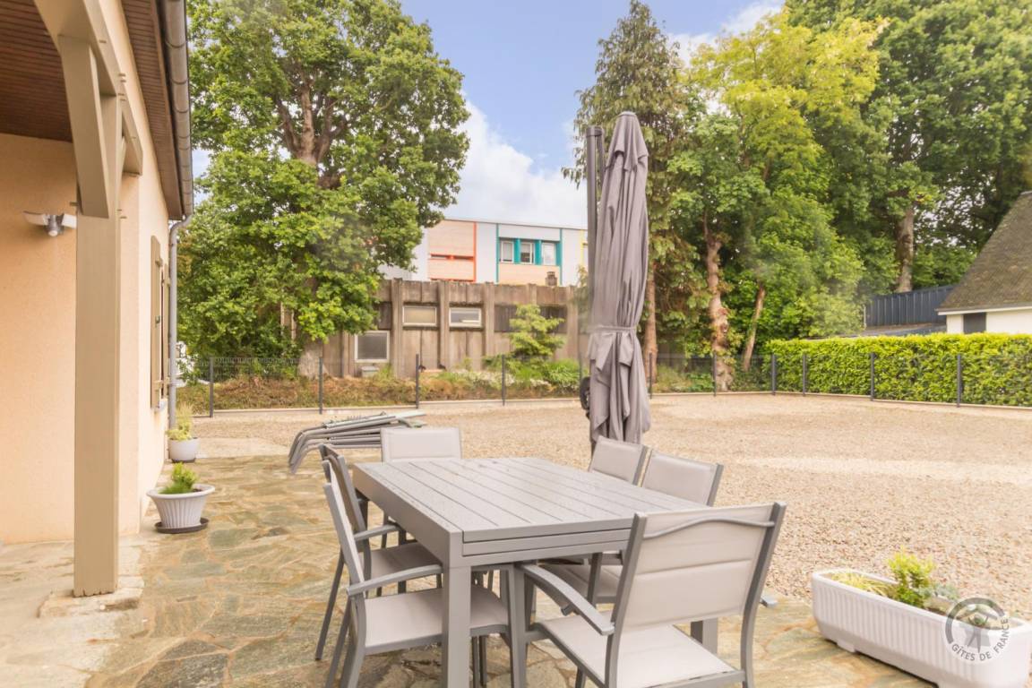 „Accueil chaleureux et attentionné, corbeille de bienvenue bien fournie, propreté irréprochable, nous nous sommes sentis d'emblée comme chez nous. RIEN ne manque dans les nombreux placards au niveau ustensiles de cuisine et même épicerie de base.. du jamais vu. Les chambres mansardées sont charmantes et équipées de nombreux placards. Une buanderie avec lave-linge et sèche-linge, lessives etc.., 2 vélos à disposition et un terrain de boules. De quoi passer de belles vacances non loin de nombreux centres d'intérêt et du centre ville bien animé.“