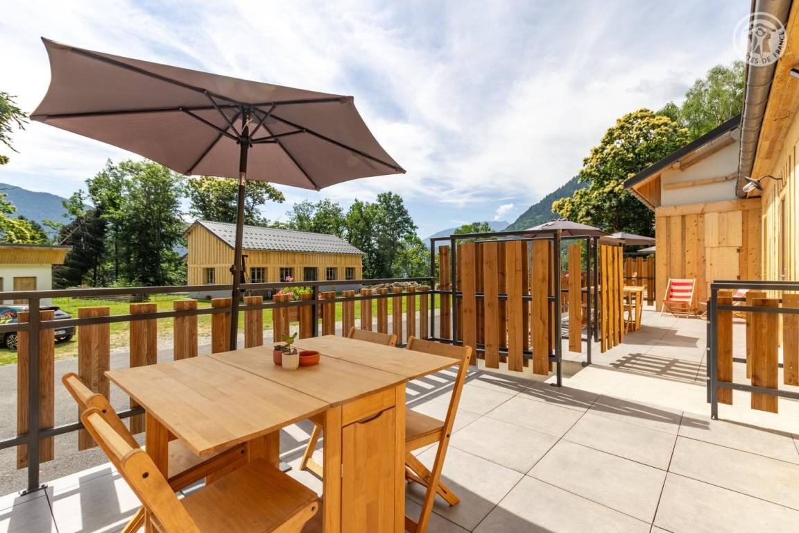 Ehemaliges Ferienlager, komplett renoviert und in einen Komplex mit 5 Ferienhäusern (4 nebeneinanderliegende Ferienhäuser und 1 Einzelhaus) umgewandelt, auf einem 6000 m² großen, von Wäldern umgebenen Grundstück. Gemeinsame Gemeinschaftsbereiche: Waschküche, Plancha, flaches Grundstück. Große private Terrasse mit freiem Blick auf die Bergkette. Parkplatz auf dem Gelände. Geschäfte in Aigueblanche.