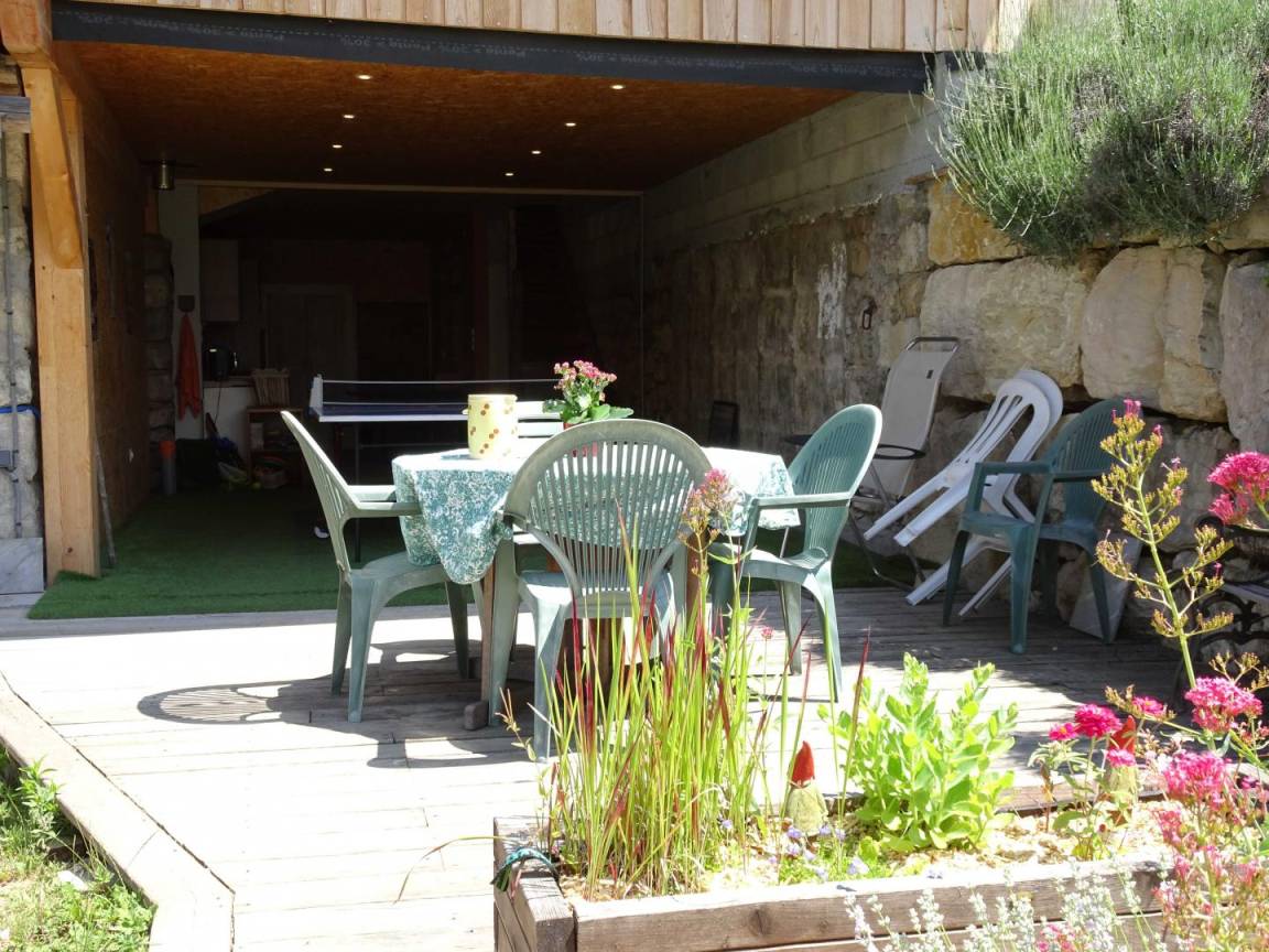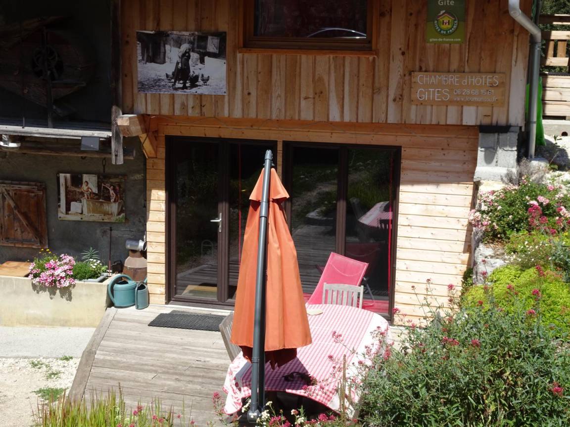 2 Gîtes im Haus des Besitzers. Erdgeschoss mit separatem Zugang (über einen kleinen Kiesweg, der zum Garten hinunterführt): Wohnzimmer-Küchen-Loungebereich (1 Doppelbett), WLAN-Verbindung, 1 Schlafzimmer (2 ausziehbare Einzelbetten), Duschbad (italienische Dusche). Bettwäsche inklusive + Betten gemacht. Private Terrasse. Überdachte Terrasse + Terrassengarten gemeinsam. 2 gemeinsame Spielräume mit Tischtennisplatte, Tischfußball und Einbauküche. Ski Aillon le Jeune 18 km, Margeriaz 20 km. Landschaftssee + Freizeitzentrum Lescheraines. Strand des Sees von Annecy 27 km. 2 gemeinsame Spielräume: Tischfußball und Leseecke im Obergeschoss und Tischtennis mit Terrasse im Erdgeschoss.