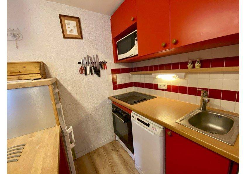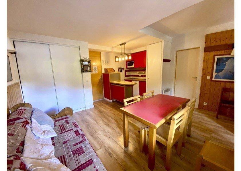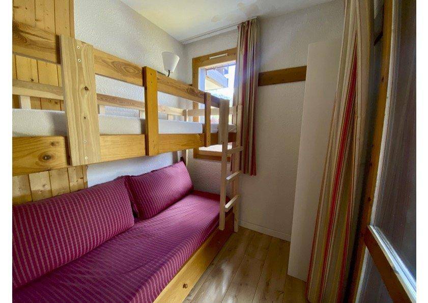 Fläche von ungefähr 43 m². 1te Etage. Orientierung : Süd. Blick skipisten. Diele. Wohnzimmer mit Ausziehschlafcouch für 2 Personen, TV. Schlafzimmer mit 2 Einzelbetten (80x190), Heizkörper. offener Schlafbereich mit Stockbett. Küche mit Raclettegerät, Kaffeemaschine, Backofen, Toaster, Mikrowellenherd, Mixer, Glaskeramikkochfelder, Kühlschrank. Badezimmer. WC. Balkon mit Stuhl, Tisch. Die oberen Betten sind nicht für Kinder unter 6 Jahren geeignet.