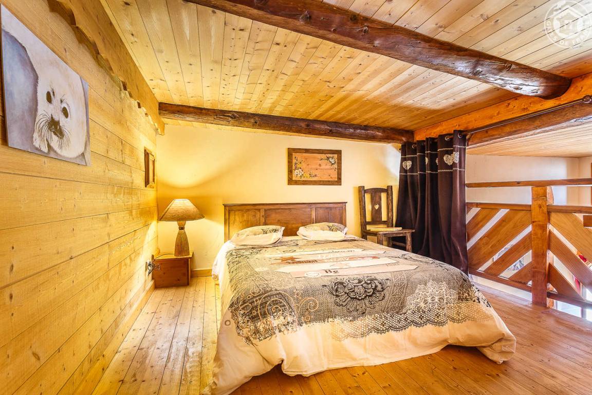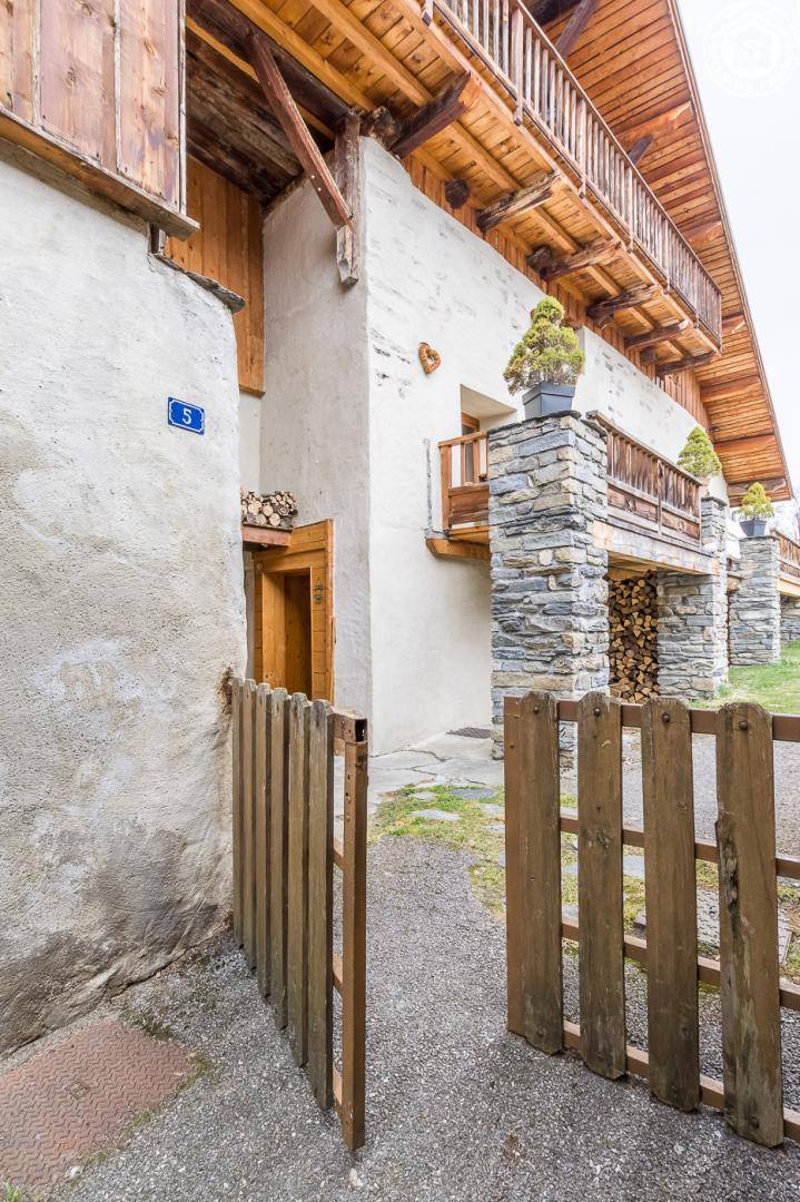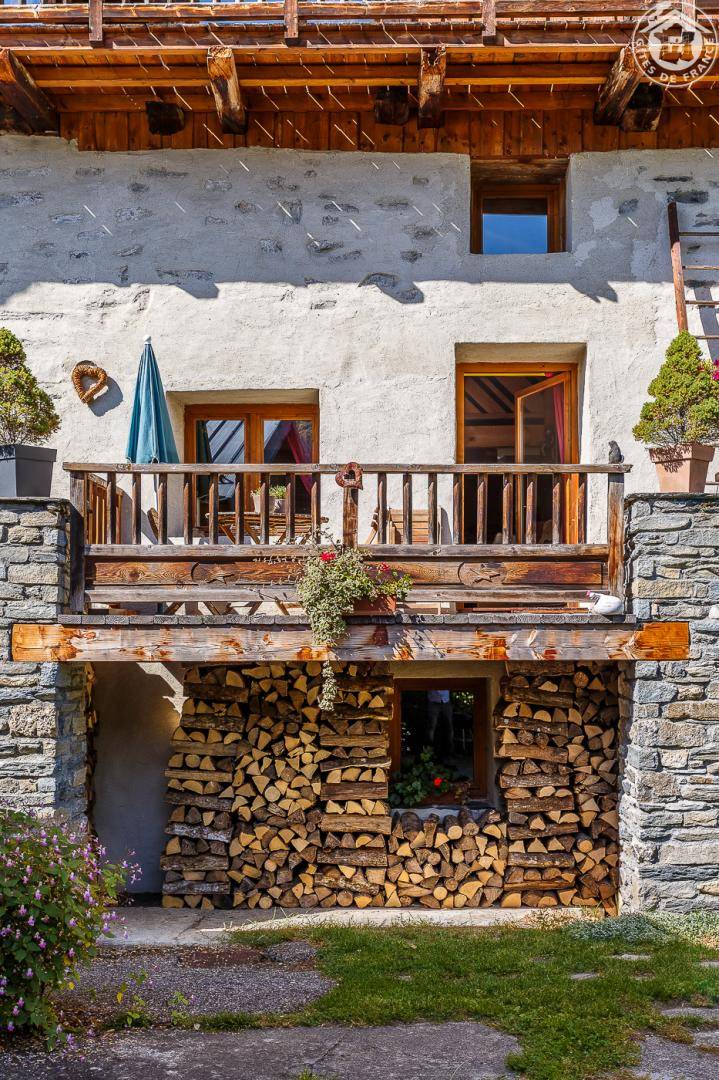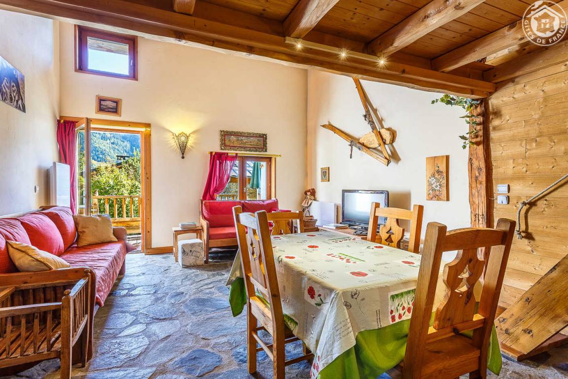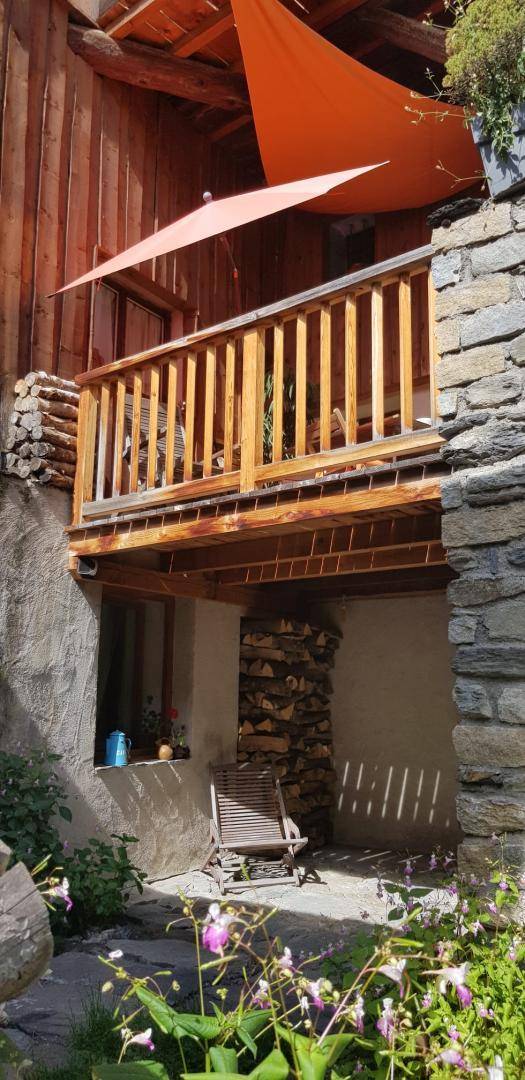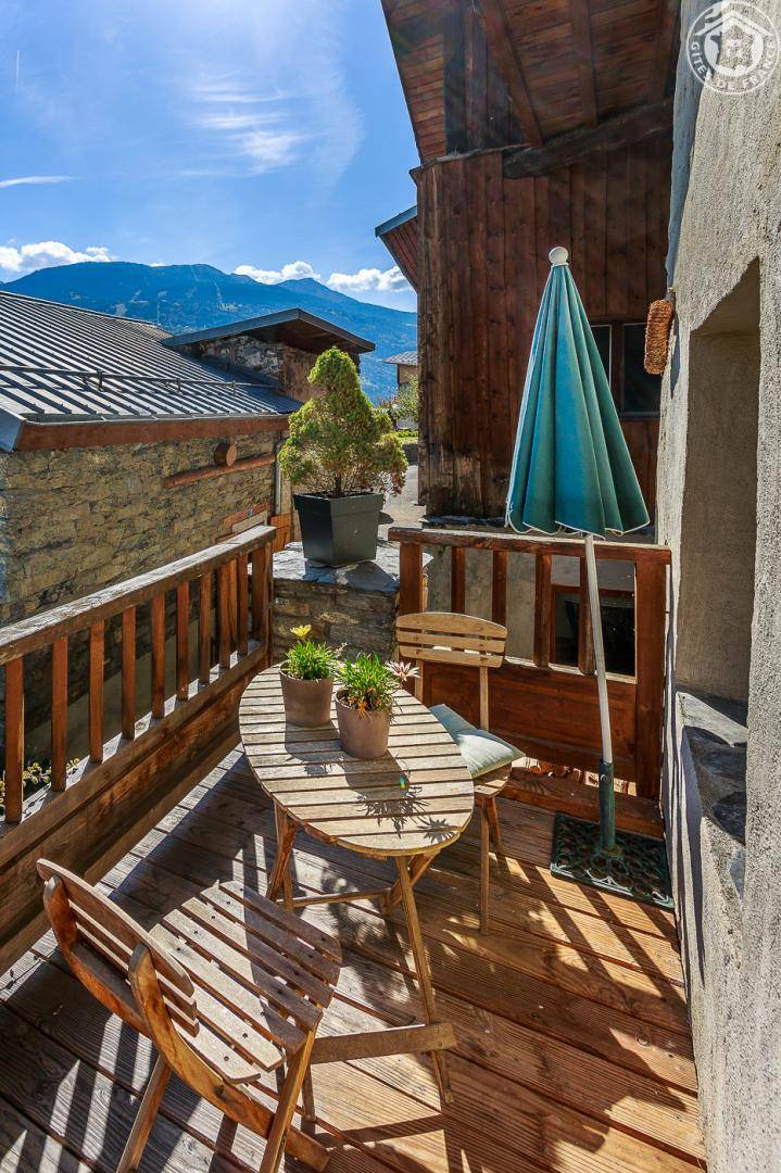 Ferienwohnung im Haus des Eigentümers. Erdgeschoss + 1. + 2. Stock: Wohnzimmer-Küchen-Loungebereich, Mezzanine (1 Doppelbett 160 x 200 cm), 1 Schlafzimmer (2 Einzelbetten, die zu 1 Doppelbett 160 x 190 cm kombiniert werden können), Badezimmer mit Wasser (Dusche mit Toilette). Balkon-Terrasse. Grundstück + Innenhof. Ski-Seilbahnverbindung Les Arcs 5 km, Montchavin-Verbindung La Plagne 12 km, Peisey-Nancroix 16 km. Gewässer 4km.