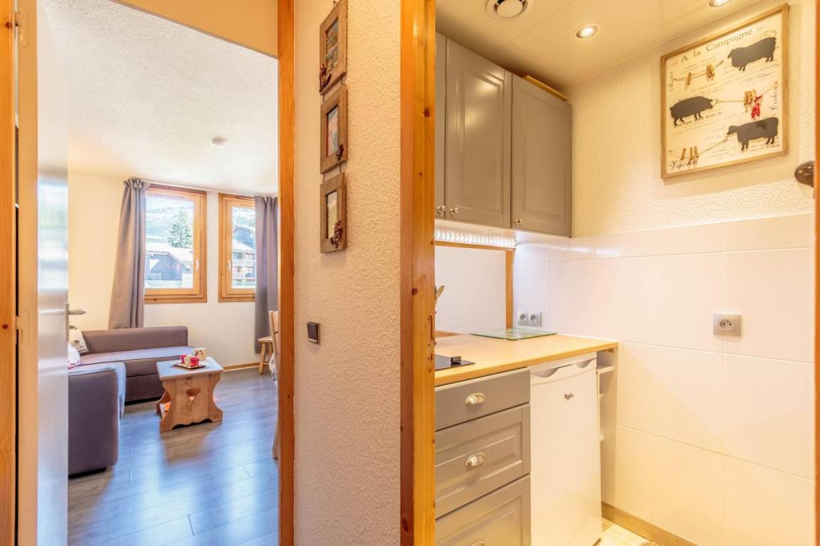 Die Trompe-l'œil-Residenz besticht durch ihre hervorragende Lage. Sie befindet sich im Dorf Les Coches, nur 50 Meter von Geschäften und dem Ortszentrum entfernt. Im Sommer 2026 finden Bauarbeiten auf dem Hauptplatz statt; tagsüber ist mit Lärmbelästigungen zu rechnen. Fläche von ungefähr 30 m². Einige als Maisonette. 4te Etage. Orientierung : Ost. Niveau 0 : Wohnzimmer mit Klappschlafcouch, DVD-Spieler, Heizkörper. Küche mit Raclettegerät, Kaffeemaschine, kleiner Backofen mit Mikrowellenfunktion, Toaster, Geschirrspülmaschine, Mikrowellenherd, Glaskeramikkochfelder, Kühlschrank. Niveau 1 : Schlafzimmer mit 3 Einzelbetten (80x190), Heizkörper. Badezimmer. WC.