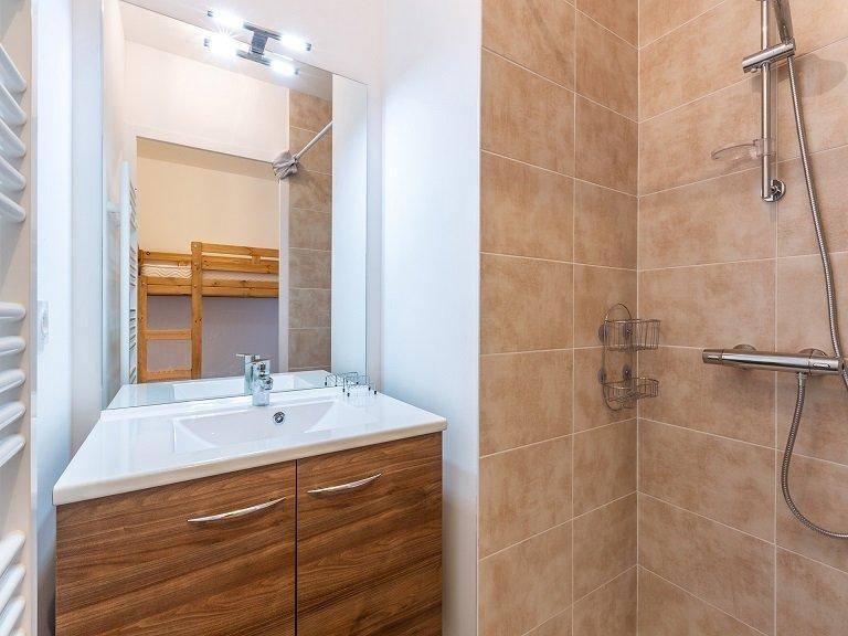 Fläche von ungefähr 55 m². 5te Etage. Orientierung : Nord-West. Blick berg. Diele. Wohnzimmer mit DVD-Spieler, Heizkörper, TV. 2 Schlafzimmer mit Doppelbett (160x200), Heizkörper. offener Schlafbereich mit Stockbett. Küche mit Kaffeemaschine, Backofen, kleiner Backofen mit Mikrowellenfunktion, Toaster, Mixer, Induktionsherdplatten, Kühl-Gefrier-Kombination. 2 Waschräume mit Dusche. WC. Balkon mit Tisch. Die oberen Betten sind nicht für Kinder unter 6 Jahren geeignet.