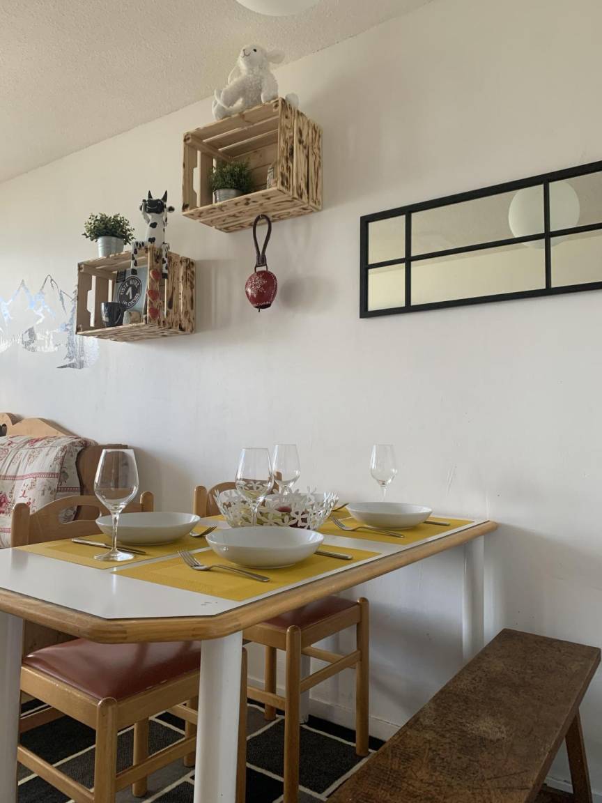 Fläche von ungefähr 27 m². 3te Etage. Orientierung : Nord-West. Blick berg (Mont-Blanc). Diele. Wohnzimmer mit Ausziehschlafcouch für 2 Personen, Einzelbett. Schlafzimmer mit Doppelbett. Küche mit Raclettegerät, Wasserkocher, 2 Kaffeemaschinen, Backofen, kleiner Backofen mit Mikrowellenfunktion, Toaster, Geschirrspülmaschine, Mixer, Glaskeramikkochfelder, Kühl-Gefrier-Kombination. Badezimmer. WC. Balkon.