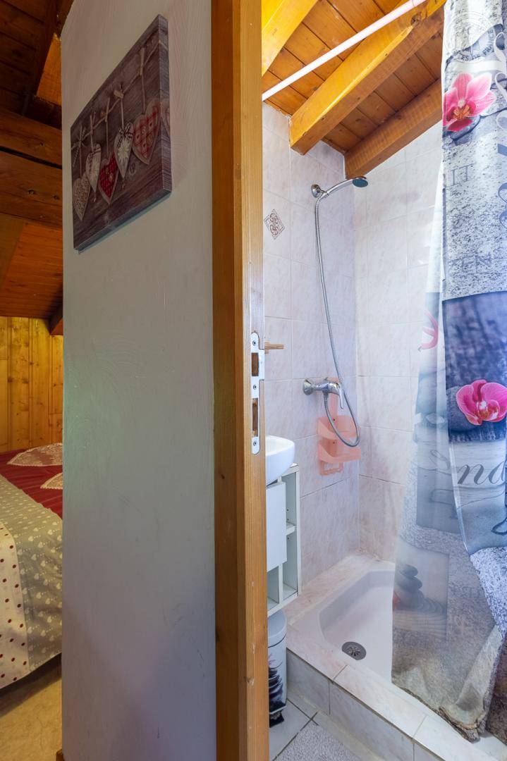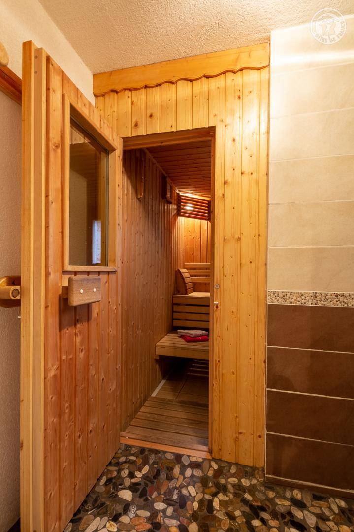Reihenhaus. Erhöhtes Erdgeschoss + 1. Stock: Wohnzimmer-Küche Lounge-Bereich, WLAN, 3 Schlafzimmer (3 Einzelbetten / 2 Einzelbetten + 1 Doppelbett / 1 Doppelbett), 4 Badezimmer mit Wasser (Dusche), davon 2 privat in 2 Schlafzimmern, 2 getrennte WCs. Sauna mit Multi-Jet-Dusche. Gesamtwohnfläche: 96 m² Dachgeschoss inklusive. Balkon + kleine private Terrasse. Gemeinsamkeit.