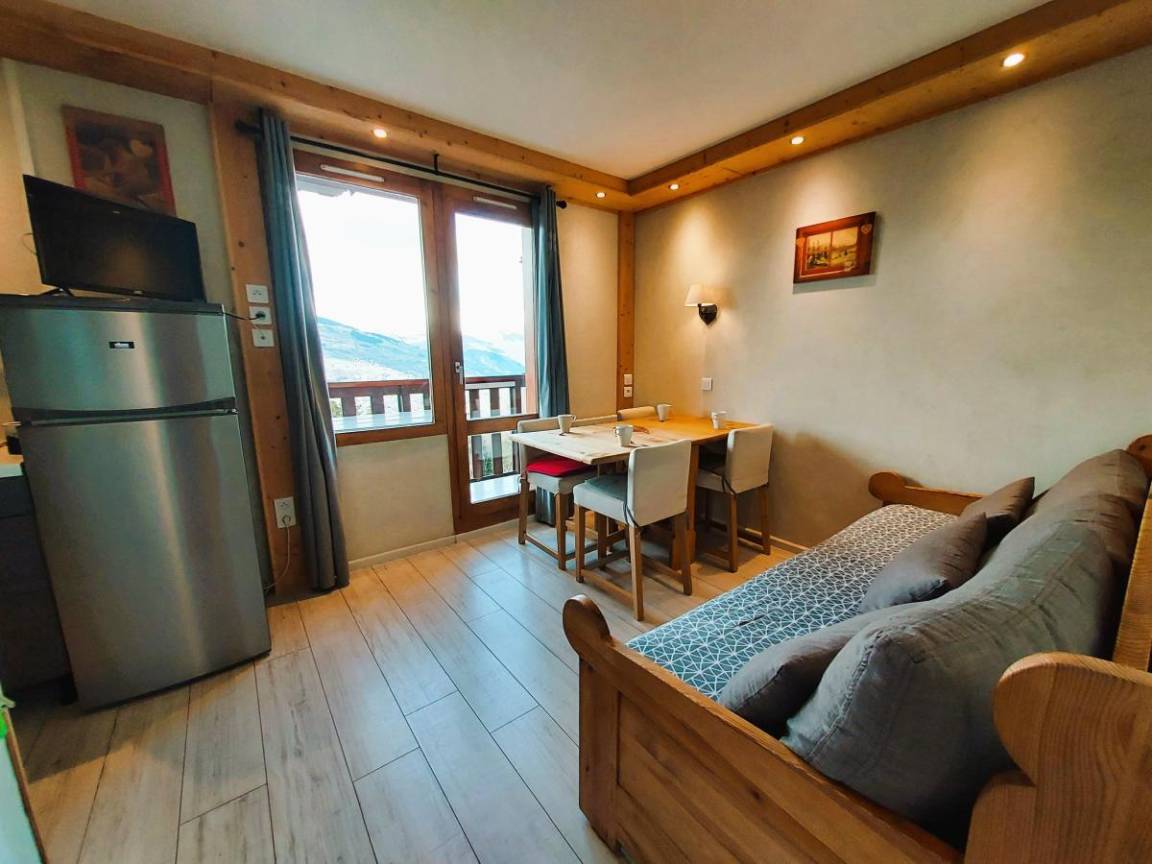 Die Trompe-l'œil-Residenz besticht durch ihre hervorragende Lage. Sie befindet sich im Dorf Les Coches, nur 50 Meter von Geschäften und dem Ortszentrum entfernt. Im Sommer 2026 finden Bauarbeiten auf dem Hauptplatz statt; tagsüber ist mit Lärmbelästigungen zu rechnen. Fläche von ungefähr 22 m². 4te Etage. Orientierung : Nord-West. Wohnzimmer mit Klappschlafcouch, Ausziehschlafcouch für 2 Personen, Einzelbett, Heizkörper, TV. Schlafzimmer mit Doppelbett (140*190), Heizkörper. Küche mit Fonduegerät, Raclettegerät, Kaffeemaschine, Backofen, kleiner Backofen mit Mikrowellenfunktion, Toaster, Geschirrspülmaschine, Induktionsherdplatten, Kühl-Gefrier-Kombination. Badezimmer. Balkon mit Tisch.