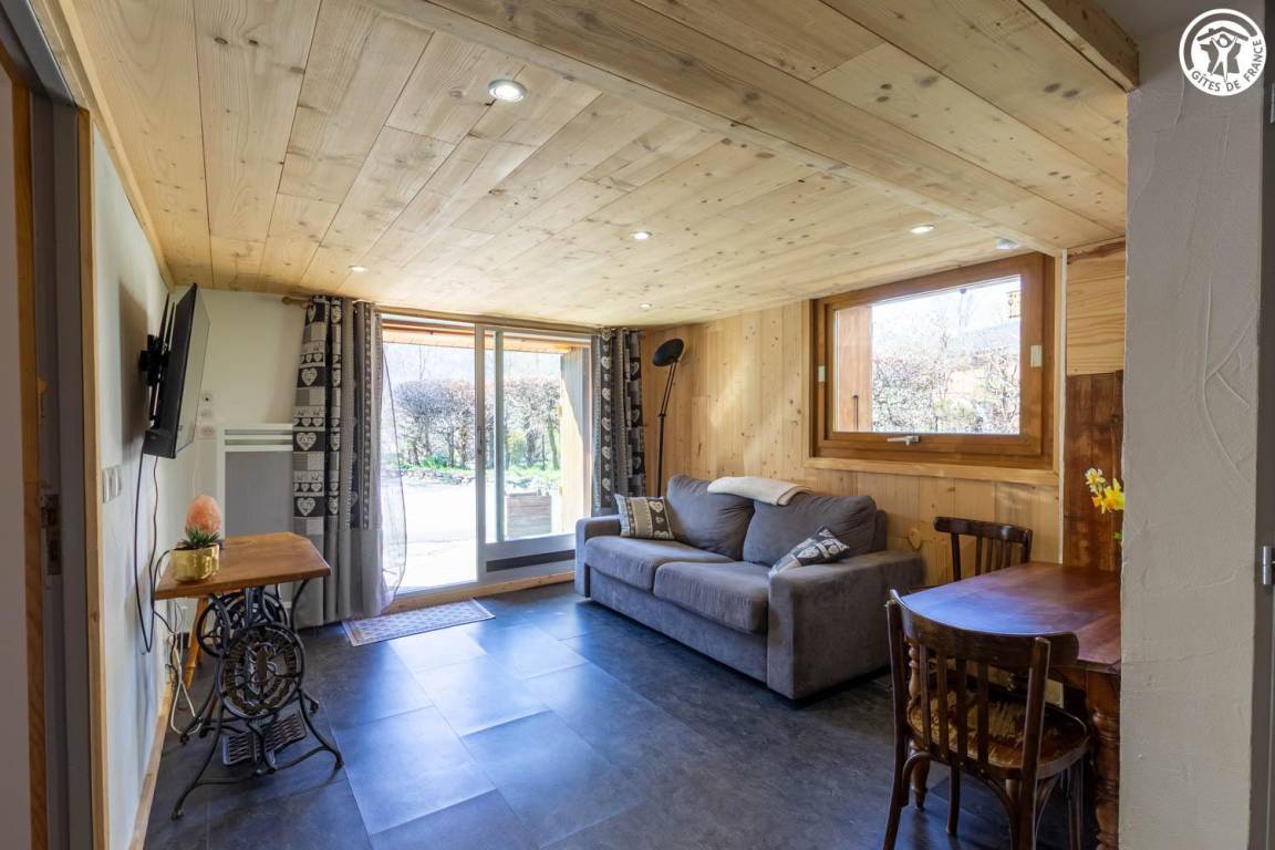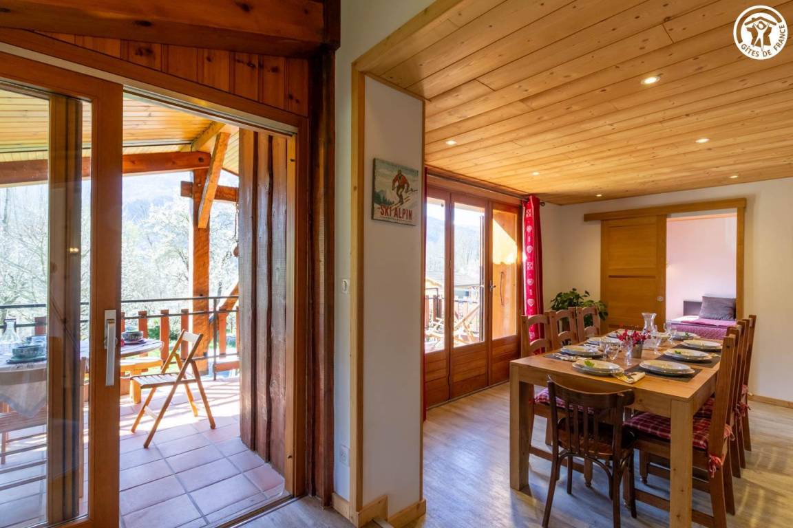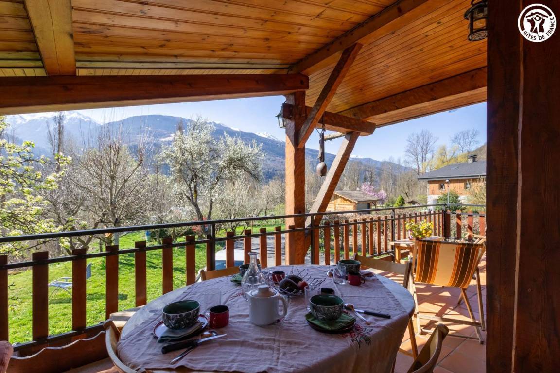 „Gîte situé au calme à proximité de Bourg Saint Maurice. Vue sur les montagnes et entouré de verdure. Il y a beaucoup d'espace et peut accueillir 8 personnes. L'entrée se fait par le 1er étage. Le rdc permet de s'isoler. Seul bémol la tv est au rdc. Le propriétaire est très gentil et sympatique.“