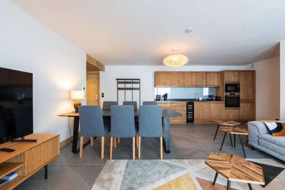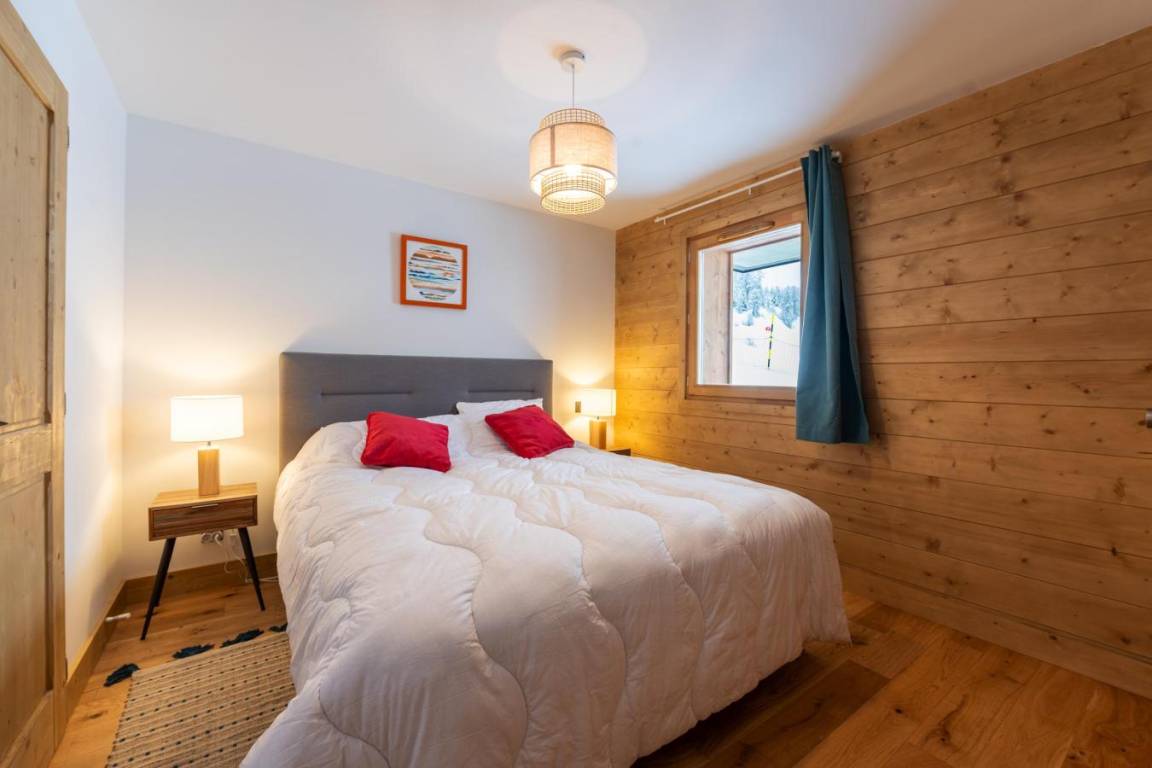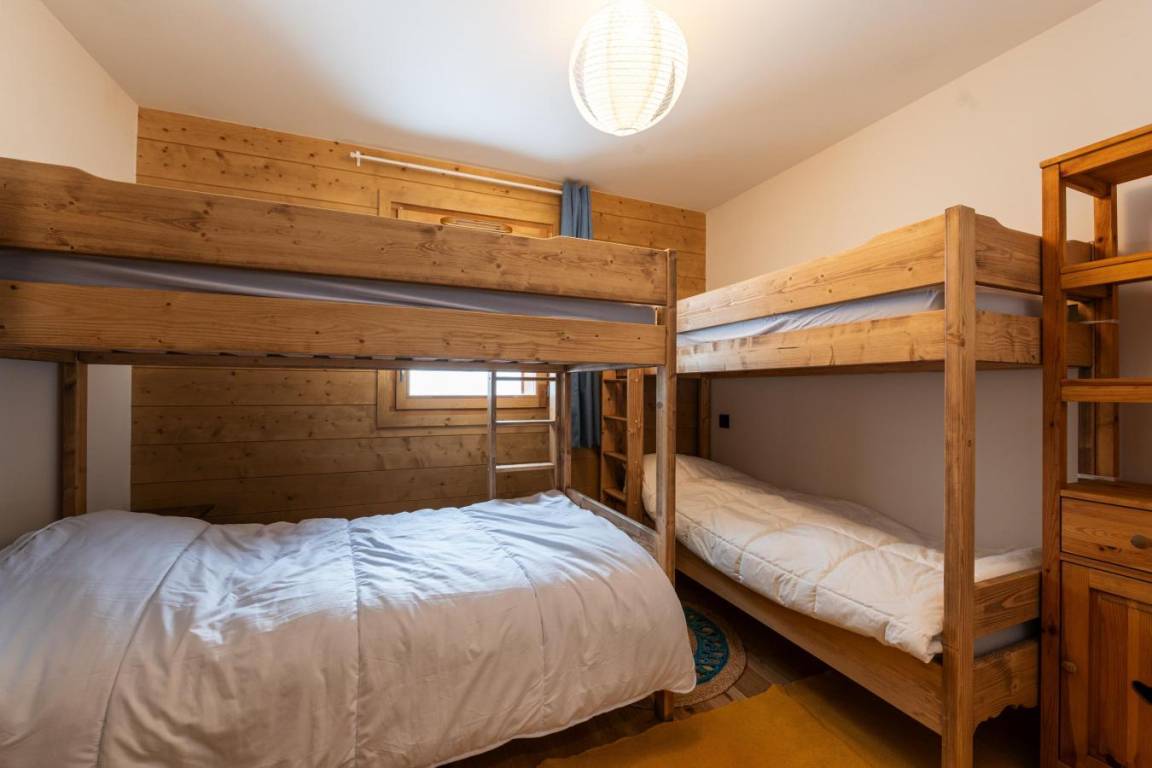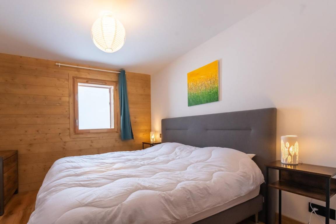 Die neue High-End-Residenz Manaka bietet einen herrlichen Blick auf den Mont Blanc. Fläche von ungefähr 88 m². Orientierung : Nord-West. Diele. Wohnzimmer. Schlafzimmer mit Stuhl, Doppelbett (180x190). Schlafzimmer mit 2 Einzelbetten (90x190+70*190). Schlafzimmer mit 2 Stockbetten. Küche mit Fonduegerät, Raclettegerät, Kaffeemaschine (nespresso), Gefrierschrank, Backofen, Toaster, Mixer, Glaskeramikkochfelder, Kühl-Gefrier-Kombination. 2 Badezimmer. WC. Balkon. Die oberen Betten sind nicht für Kinder unter 6 Jahren geeignet.