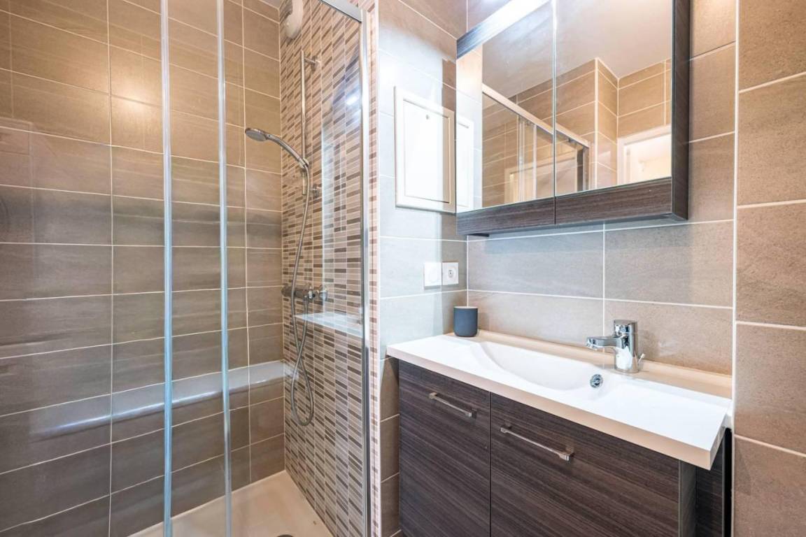 Fläche von ungefähr 64 m². 6te Etage. Orientierung : Süd-West. Wohnzimmer mit Klappschlafcouch. Essbereich. 2 Schlafzimmer mit Doppelbett (160). Kochnische mit Kaffeemaschine (Nespresso et Dolce Gusto), Backofen, Toaster, Geschirrspülmaschine, Mikrowellenherd, 2 Glaskeramikkochfelder, Kühl-Gefrier-Kombination. Waschräume mit Waschmaschine, Wäschetrockner. Waschräume mit WC. separates WC. Terrasse.