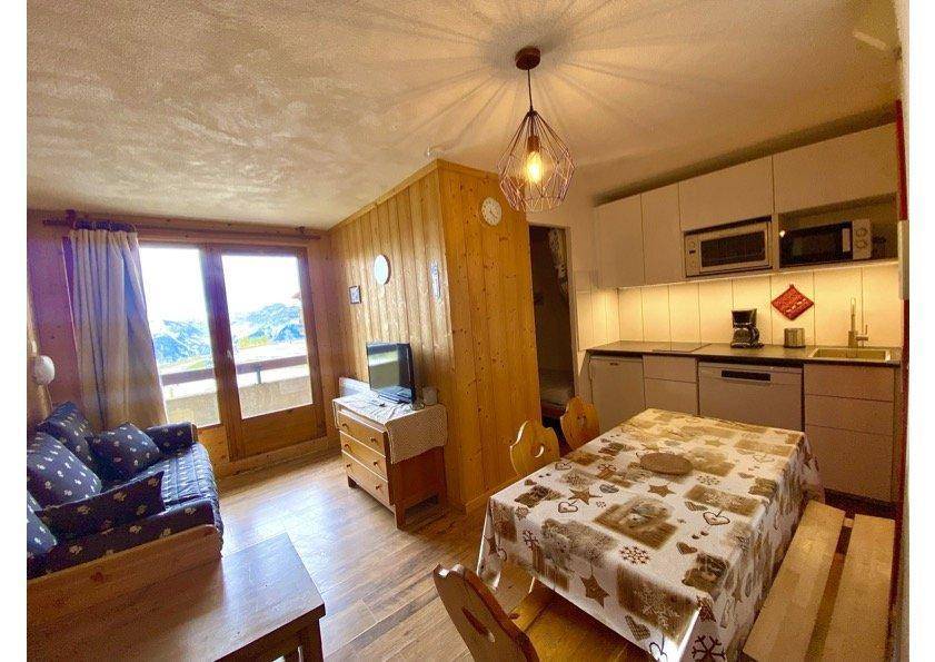 Fläche von ungefähr 25 m². 2te Etage. Orientierung : Süd-West. Blick skipisten. Wohnzimmer mit 2 Ausziehbetten (80*190), Heizkörper. Schlafzimmer mit Einzelbett (80x190), 2 Stockbetten. Küche mit Raclettegerät, Kaffeemaschine, Backofen, kleiner Backofen mit Mikrowellenfunktion, elektronische Herdplatten, Kühlschrank. Badezimmer. WC. Balkon. Die oberen Betten sind nicht für Kinder unter 6 Jahren geeignet.