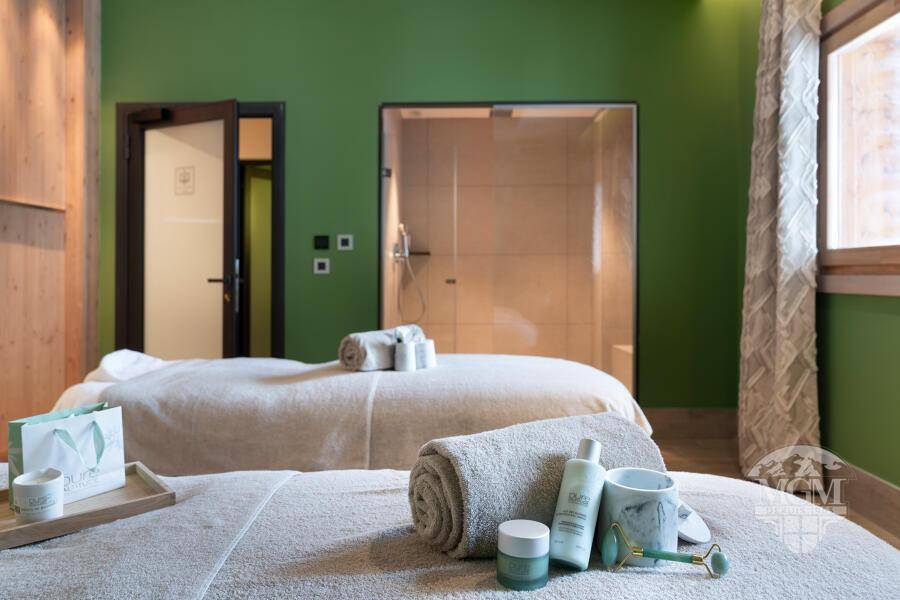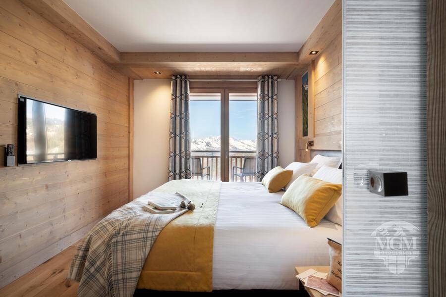 Fläche von ungefähr 63 m². Orientierung : Nord. Blick berg (Mont Blanc). Wohnzimmer mit Ausziehschlafcouch für 2 Personen. Schlafzimmer mit Safe, Dusche, Doppelbett, WC. Schlafzimmer mit 2 Einzelbetten. Küche mit Wasserkocher, 2 Kaffeemaschinen (Nespresso et filtres), , kleiner Backofen mit Mikrowellenfunktion, Toaster, Geschirrspülmaschine, 2 Induktionsherdplatten, Kühlschrank. Badezimmer mit Badewanne, Handtuchtrockner. separates WC. Balkon mit Gartentisch und -stühle.