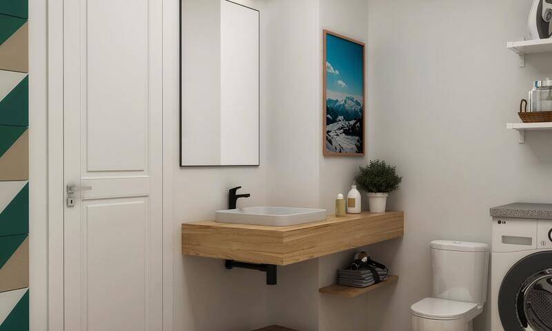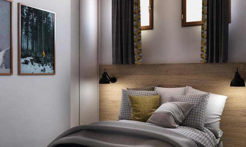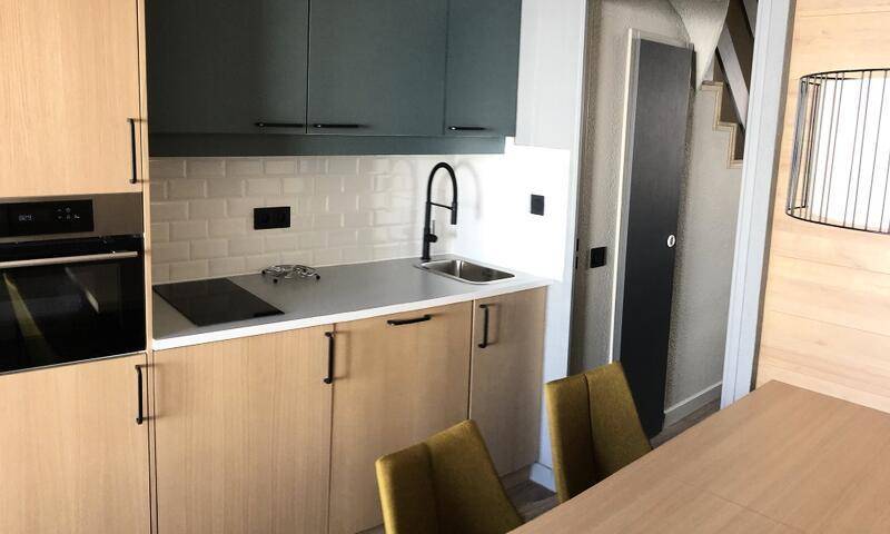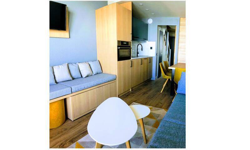 Fläche von ungefähr 35 m². 4te Etage. Orientierung : Süd. Blick berg. Wohnzimmer mit 2 Sofabetten. Schlafzimmer mit Doppelbett. offener Schlafbereich mit 2 Stockbetten. Kochnische mit Kaffeemaschine, Geschirrspülmaschine, Mikrowellenherd, elektronische Herdplatten, Kühlschrank. Waschräume mit Badewanne, WC. Badezimmer mit Badewanne oder Dusche, WC. Balkon. Die oberen Betten sind nicht für Kinder unter 6 Jahren geeignet.