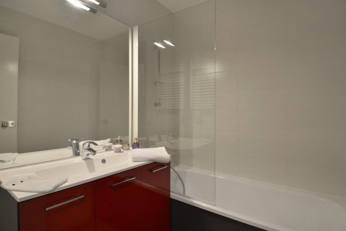 Fläche von ungefähr 35 m². 3te Etage. Orientierung : Süd, Süd-West, West. Blick skipisten. Wohnzimmer mit 2 Einzelbetten, Flachbildfernseher. Schlafzimmer mit Doppelbett. offener Schlafbereich mit 2 Stockbetten. Kochnische mit Geschirrspülmaschine, Mikrowellenherd, 2 Glaskeramikkochfelder, Kühlschrank. Badezimmer mit Badewanne. separates WC. Balkon. Die oberen Betten sind nicht für Kinder unter 6 Jahren geeignet.