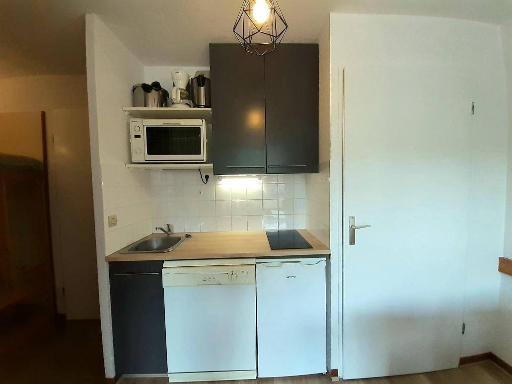 Fläche von ungefähr 25 m². 1te Etage. Orientierung : Süd-West. Blick skipisten. Diele. Wohnzimmer mit einfache Klappschlafcouch, Ausziehschlafcouch für 2 Personen, Heizkörper. Schlafzimmer mit Doppelbett (140x190), Heizkörper. offener Schlafbereich mit Stockbett. Küche mit 2 Kaffeemaschinen, Backofen, kleiner Backofen mit Mikrowellenfunktion, Glaskeramikkochfelder. Badezimmer. WC. Balkon. Die oberen Betten sind nicht für Kinder unter 6 Jahren geeignet.