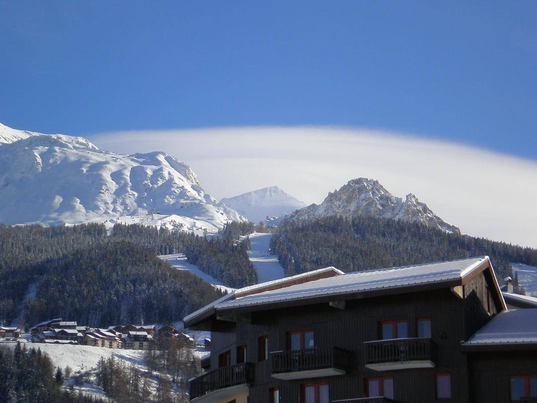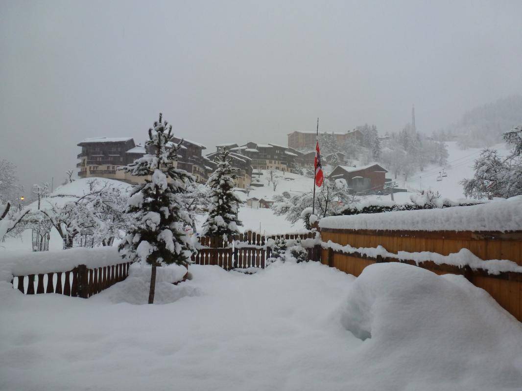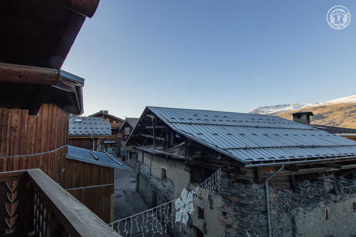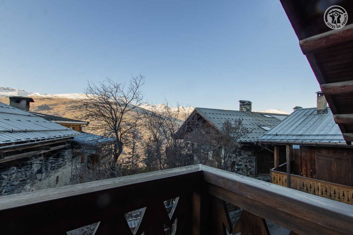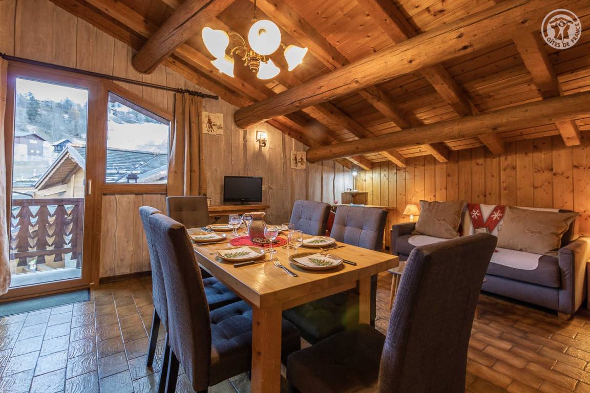 Chalet im Herzen des Resorts und mit 2 Gites + 1 Restaurant im Erdgeschoss. Wohnung im 2. Stock: Wohnzimmer-Küchen-Loungebereich (1 Schlafsofa für 2 Personen), 2 Schlafzimmer (2 modulare Einzelbetten / 1 Doppelbett), darunter 1 externes Schlafzimmer auf dem Flur mit eigenem Bad (Dusche und WC). Badezimmer (Dusche), separates WC. 2 Balkone, Gemeinschaftsgrundstück in 50m. Skigebiet Montchavin Paradiski 100m. Wassersportzentrum 200m. Akzeptiert nur 1 Tier.