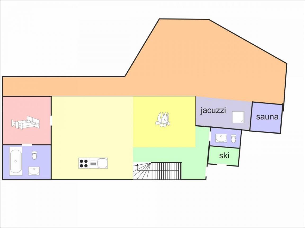 Fläche von ungefähr 160 m². 2 Schlafzimmer mit Doppelbett. 2 Badezimmer mit Dusche. separates WC. Balkon. Sauna mit Dusche, Whirlpool. Waschmaschine, Wäschetrockner. Niveau 1 : Wohnzimmer mit Schwedenofen. Schlafzimmer mit 2 Einzelbetten. offene Küche mit Fonduegerät, Raclettegerät, Wasserkocher, Kaffeemaschine, Backofen, Toaster, Geschirrspülmaschine, Mikrowellenherd, Mixer, Induktionsherdplatten, Kühlschrank. Badezimmer mit Dusche, WC. Niveau 2 : 2 Schlafzimmer mit 2 Einzelbetten. 2 Badezimmer mit Dusche, WC.
