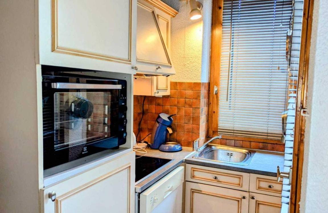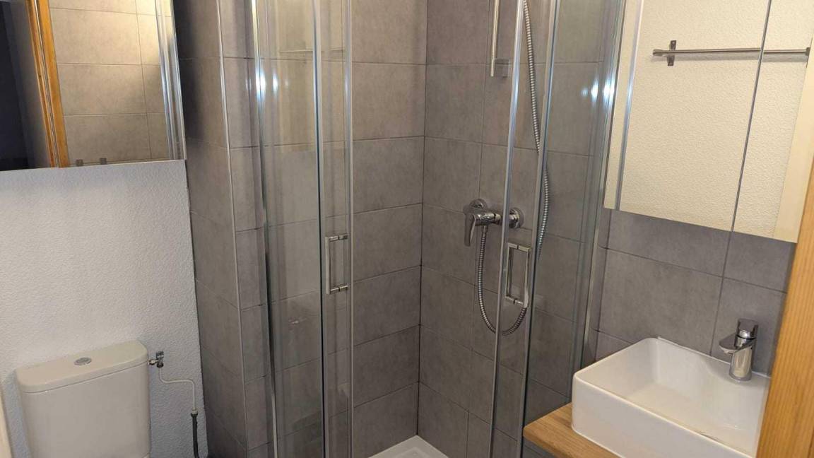Fläche von ungefähr 46 m². 3te Etage. Orientierung : Nord, West. Wohnzimmer mit 2 Sofabetten. Schlafzimmer mit 2 Ausziehbetten, 2 Stockbetten. Zwischengeschoss mit Doppelbett (140). Kochnische mit Backofen, Geschirrspülmaschine, Mikrowellenherd, 4 Glaskeramikkochfelder, Kühlschrank. separates WC. Badezimmer mit Badewanne. Waschräume mit Dusche, WC. Balkon. Die oberen Betten sind nicht für Kinder unter 6 Jahren geeignet.