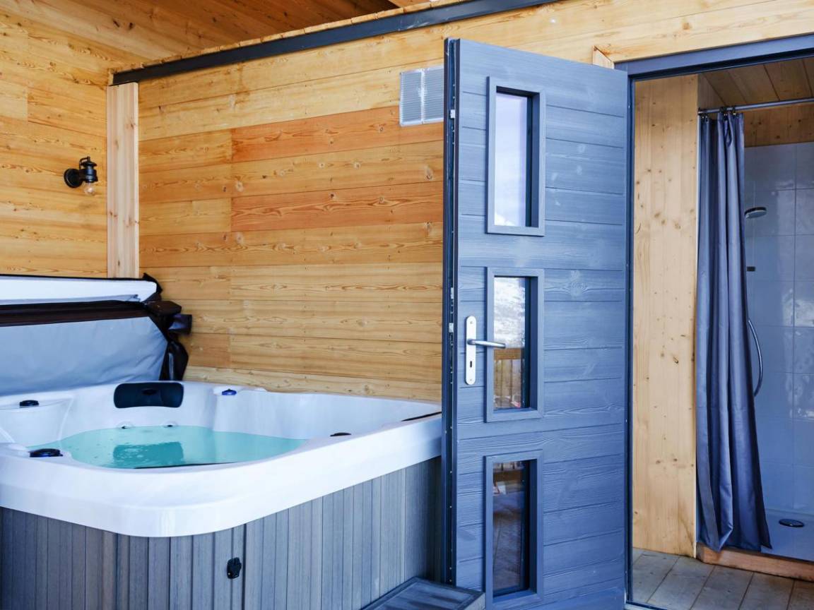 Fläche von ungefähr 170 m². Schlafzimmer mit Klappschlafcouch. 2 Schlafzimmer mit Doppelbett. Badezimmer mit Dusche, WC. Badezimmer mit Badewanne, WC. Balkon. Sauna mit Dusche, Whirlpool. Waschmaschine, Wäschetrockner. Niveau 1 : Wohnzimmer mit Schwedenofen. offene Küche mit Fonduegerät, Raclettegerät, Wasserkocher, Kaffeemaschine, Backofen, Toaster, Geschirrspülmaschine, Mikrowellenherd, Mixer, Induktionsherdplatten, Kühlschrank. Badezimmer mit Dusche, WC. separates WC. Niveau 2 : 2 Schlafzimmer mit Doppelbett, Einzelbett. 2 Badezimmer mit Dusche, WC.