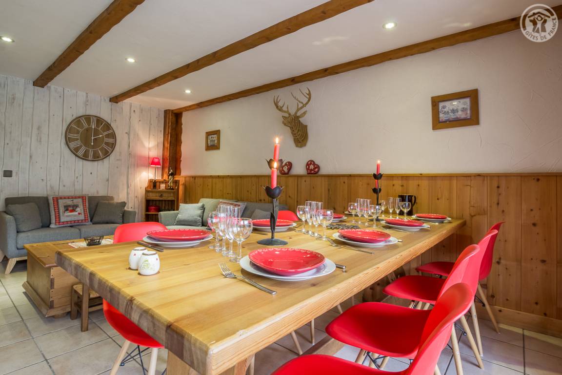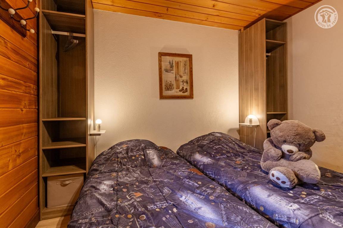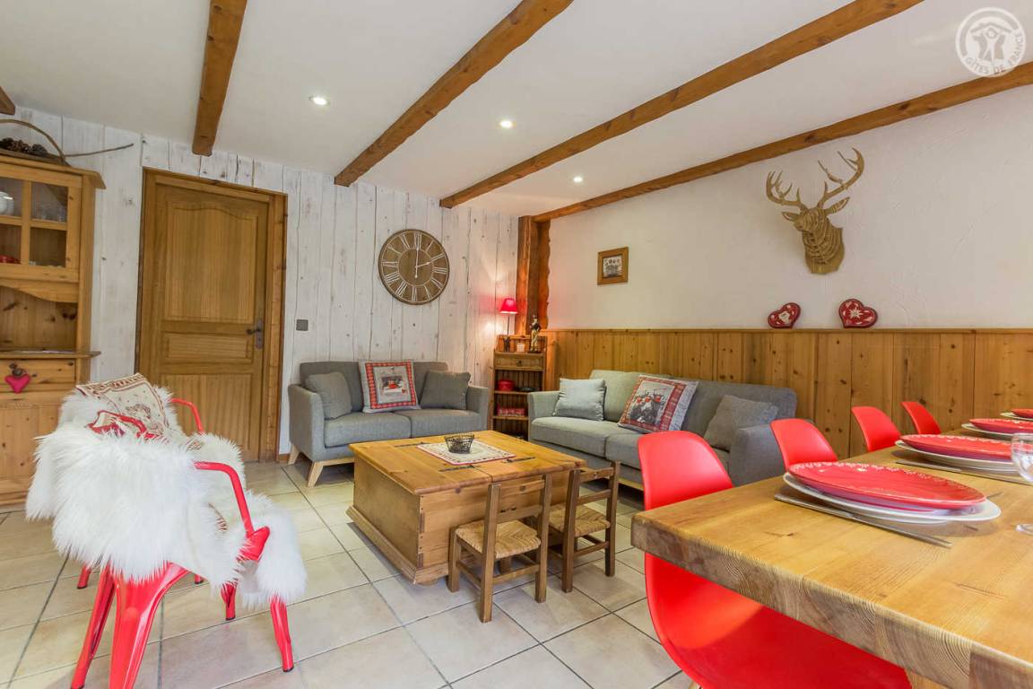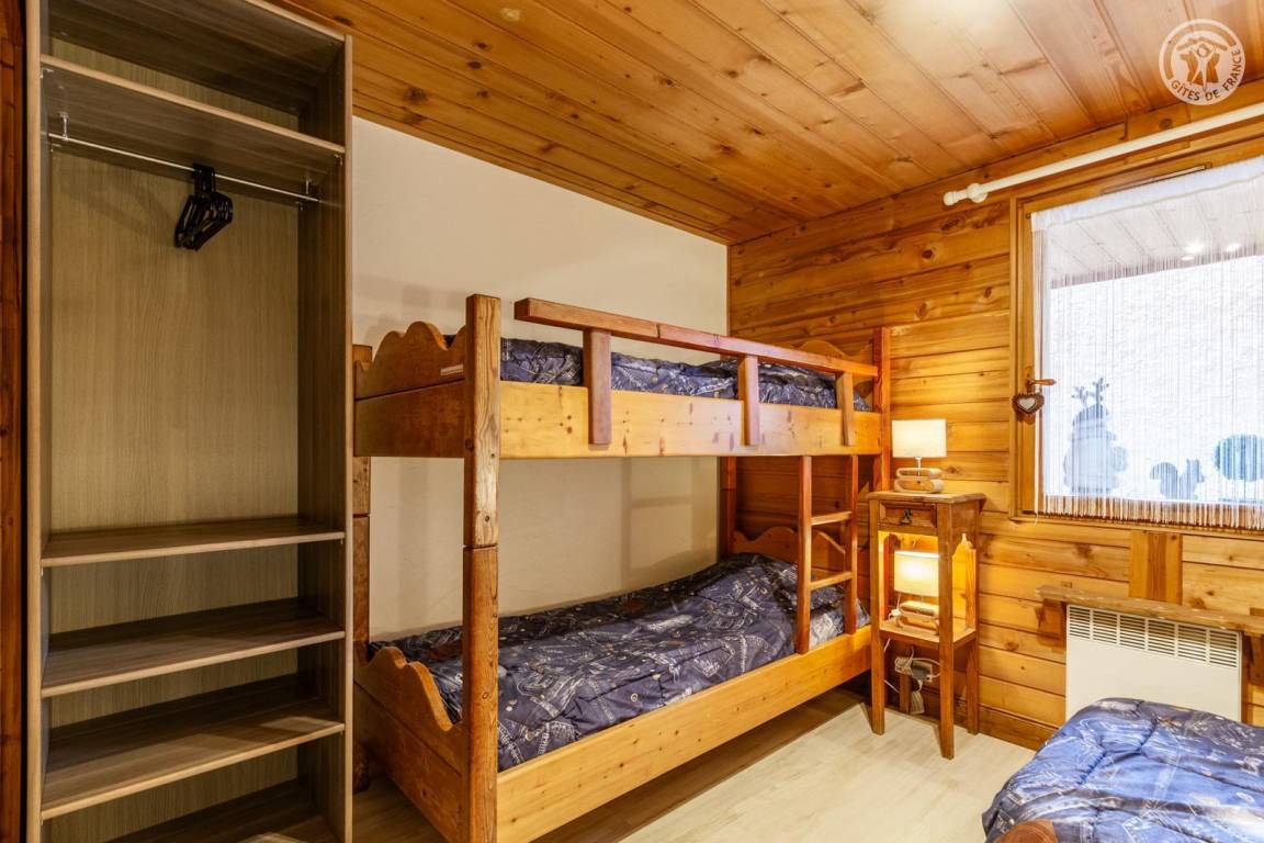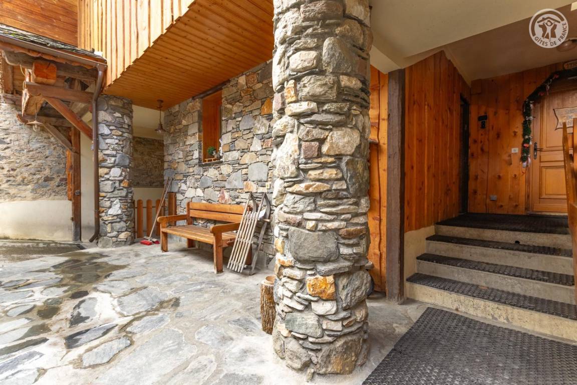 Chalet bestehend aus 7 Wohnungen (3 Ferienhäuser, 3 möblierte Touristenunterkünfte und eine ganzjährig bewohnte Familienunterkunft). Gîte im Erdgeschoss mit unabhängigem Zugang. Wohnküche, Loungebereich, 3 Schlafzimmer (3 Einzelbetten, davon 2 Etagenbetten / 2 Schlafzimmer mit Doppelbett), 2 Badezimmer (Dusche), davon 1 mit WC + 1 separates WC. Privater Platz für ein Standardauto in einer überdachten Sammelgarage, nur im Winter verfügbar (Keller des Chalets). Skigebiet Montchavin-les Coches/Paradiski vor Ort (Rückfahrt zum Chalet auf Skiern). Wasser- und Entspannungszentrum Espace Paradisio in 200 m Entfernung mit Außen- und Innenpool + Wellnessgeräten. Erschlossener und überwachter See im 10 km entfernten Macot. Gemeinsamer Garten.