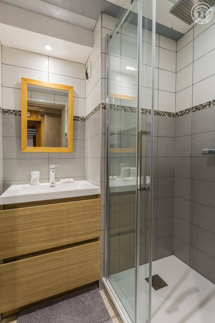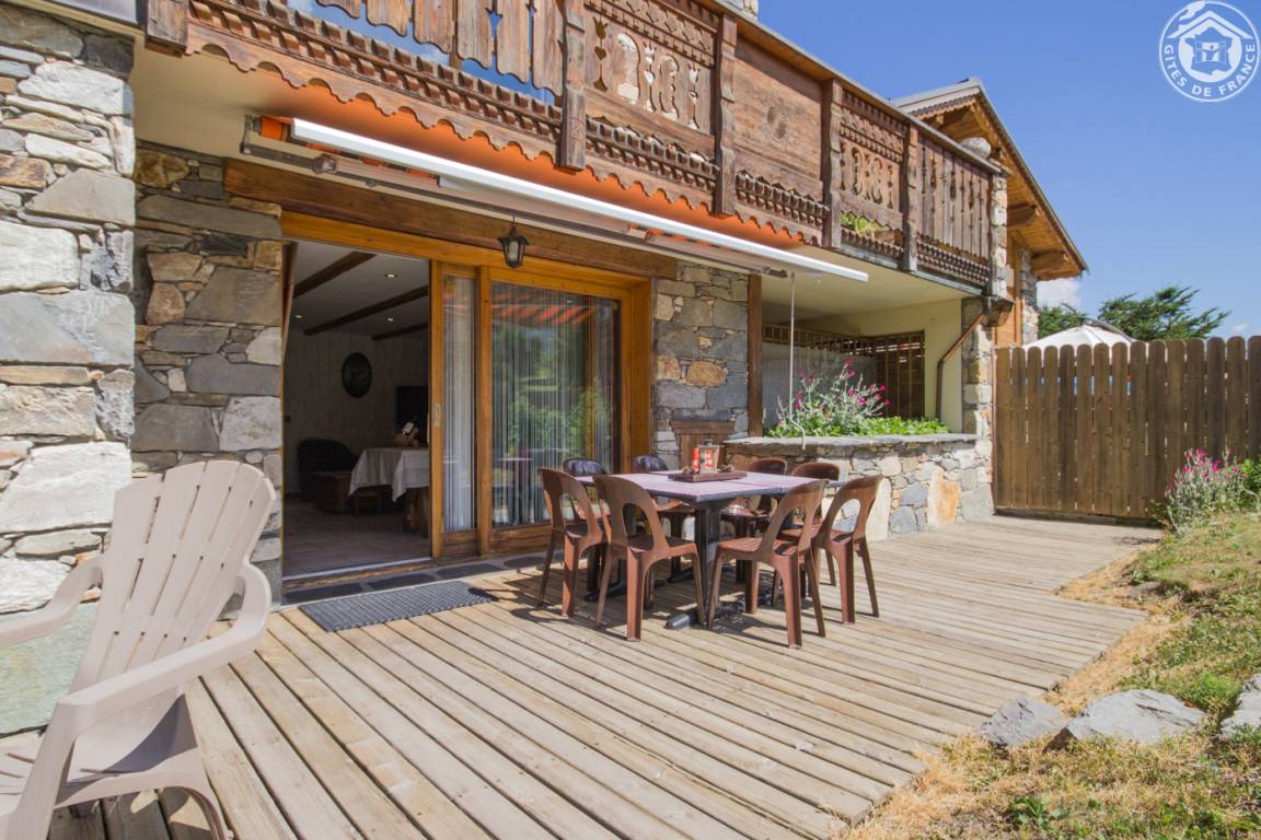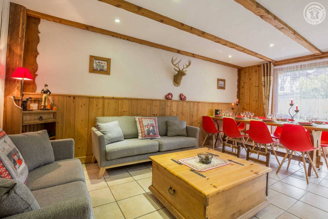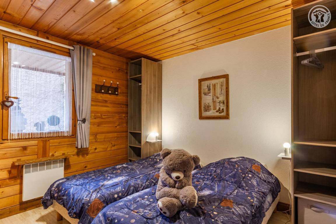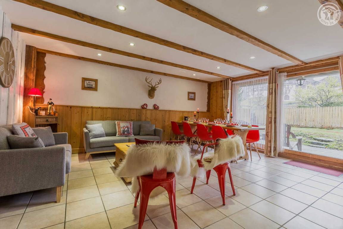 Chalet bestehend aus 7 Wohnungen (3 Ferienhäuser, 3 möblierte Touristenunterkünfte und eine ganzjährig bewohnte Familienunterkunft). Gîte im Erdgeschoss mit unabhängigem Zugang. Wohnküche, Loungebereich, 3 Schlafzimmer (3 Einzelbetten, davon 2 Etagenbetten / 2 Schlafzimmer mit Doppelbett), 2 Badezimmer (Dusche), davon 1 mit WC + 1 separates WC. Privater Platz für ein Standardauto in einer überdachten Sammelgarage, nur im Winter verfügbar (Keller des Chalets). Skigebiet Montchavin-les Coches/Paradiski vor Ort (Rückfahrt zum Chalet auf Skiern). Wasser- und Entspannungszentrum Espace Paradisio in 200 m Entfernung mit Außen- und Innenpool + Wellnessgeräten. Erschlossener und überwachter See im 10 km entfernten Macot. Gemeinsamer Garten.