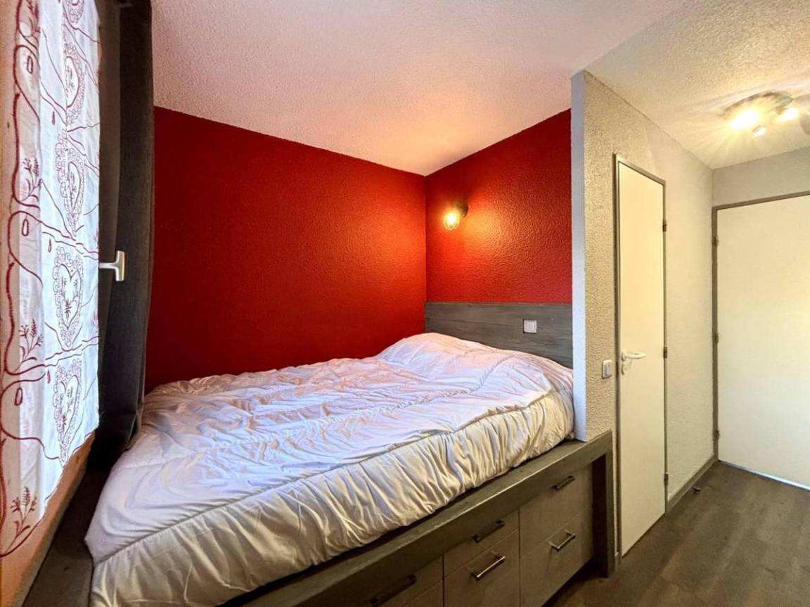 Fläche von ungefähr 35 m². 5te Etage. Orientierung : West. Niveau 0 : Wohnzimmer mit BZ-Sofas (140). offener Schlafbereich mit Doppelbett (130). Kochnische mit Fonduegerät, Wasserkocher, Kaffeemaschine, kleiner Backofen mit Mikrowellenfunktion, Toaster, Dunstabzugshaube, Geschirrspülmaschine, 2 Induktionsherdplatten, Kühlschrank. Waschräume mit WC. Balkon. Niveau 1 : Schlafzimmer mit Doppelbett. Badezimmer mit WC.