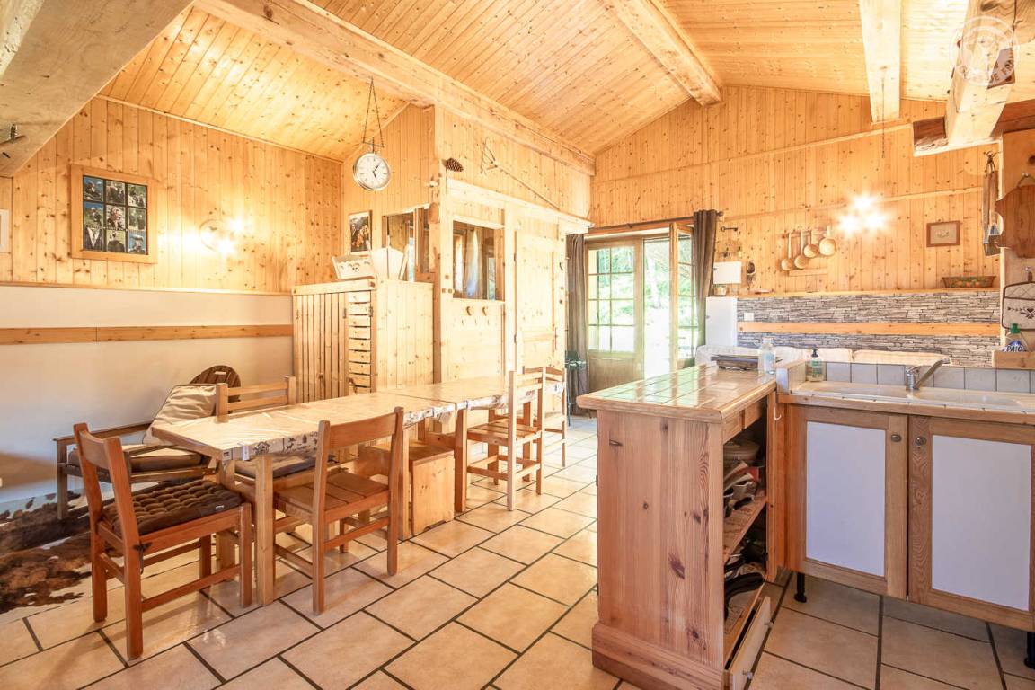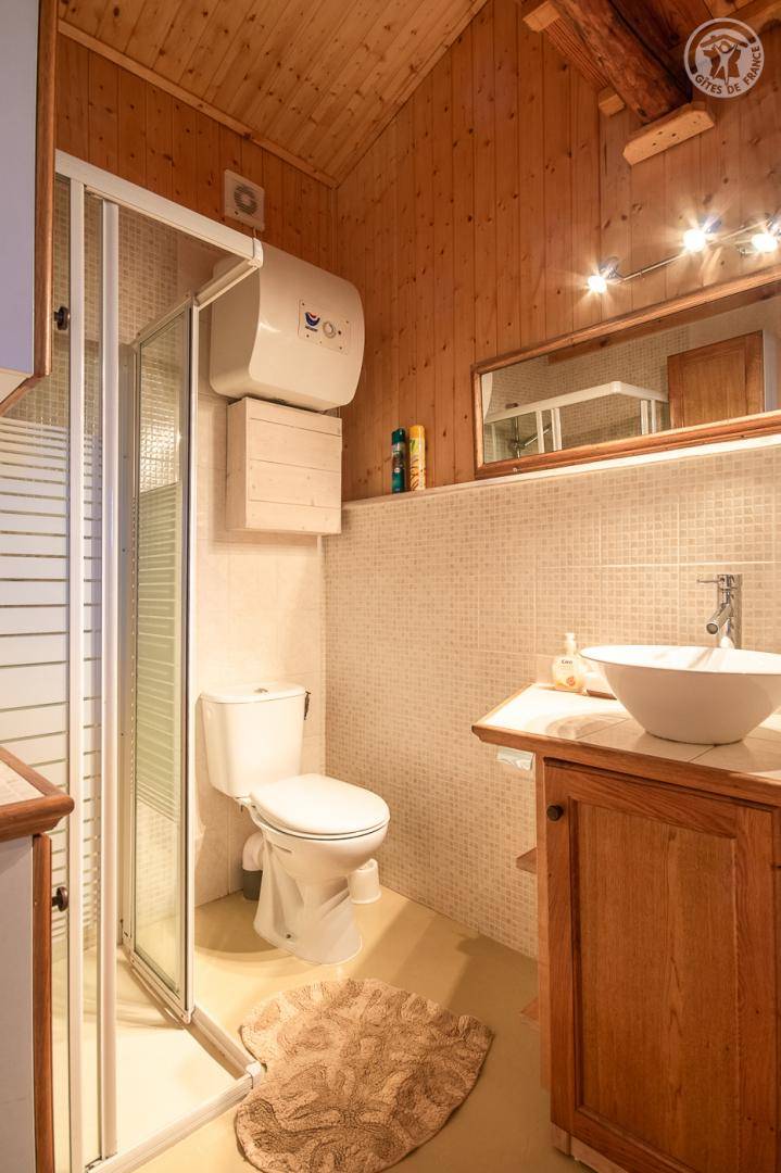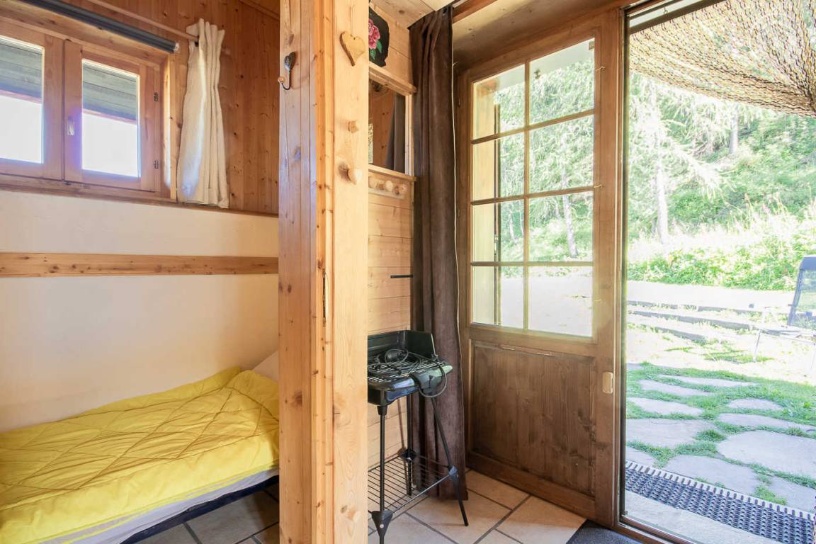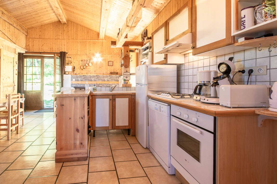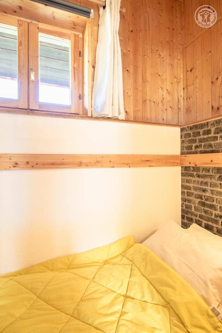 Komfortables Einzelchalet (Zugang auf gleicher Ebene über 3 Abstiegsstufen): Wohnzimmer-Küche-Lounge (1 Doppelschlafcouch / voll ausgestattete integrierte Küche), 1 Schlafzimmer (1 Doppelbett), 1 Schlafkabine (1 Einzelbett), Badezimmer (Dusche mit WC). Strom über EDF-Netz + Holzofen Terrasse. Landschaftlich gestaltetes flaches Grundstück (800m²). Direkter Zugang zum Chalet über befahrbare Forststraße über 3 km geöffnet vom 15.06. bis 19.09. Schwimmbad 23 km. Geschäfte 13 km.