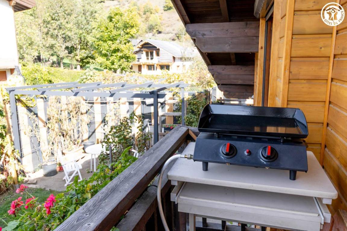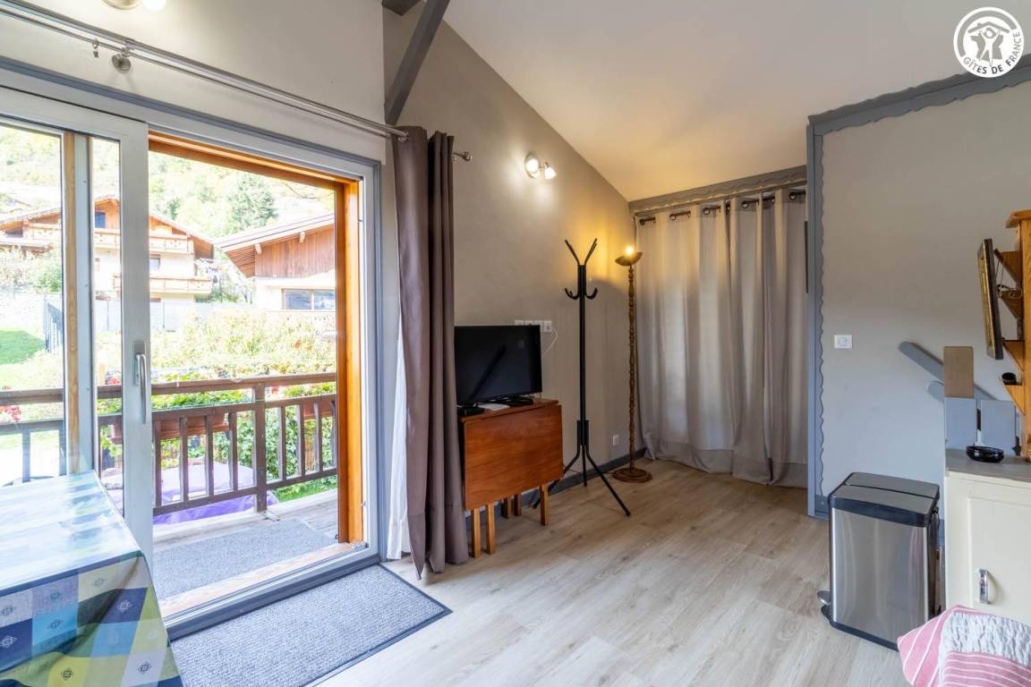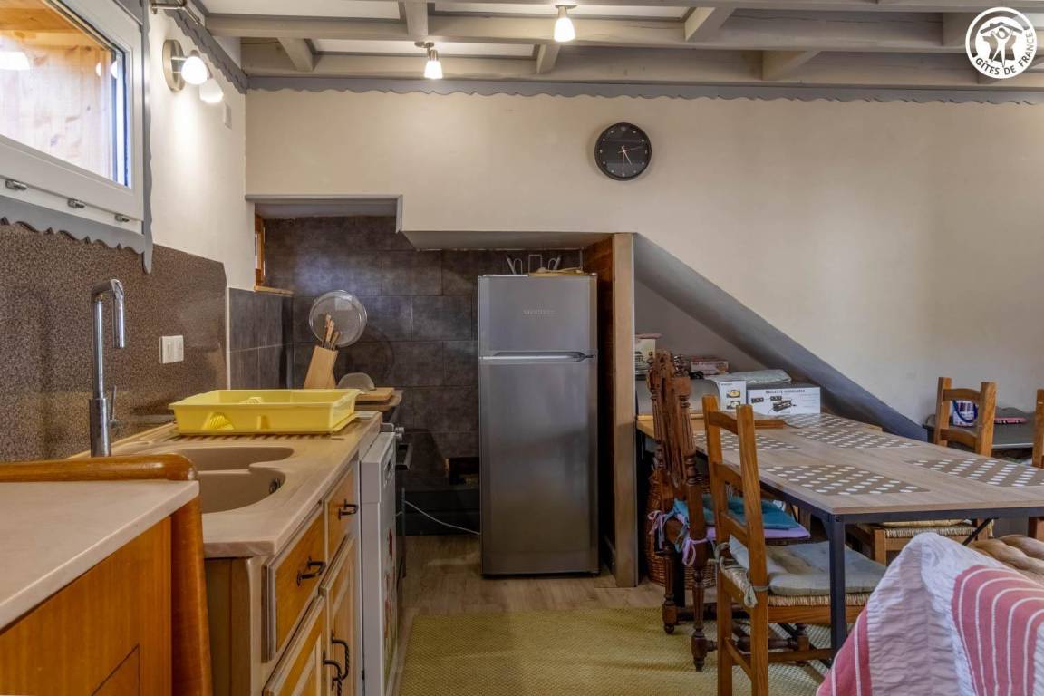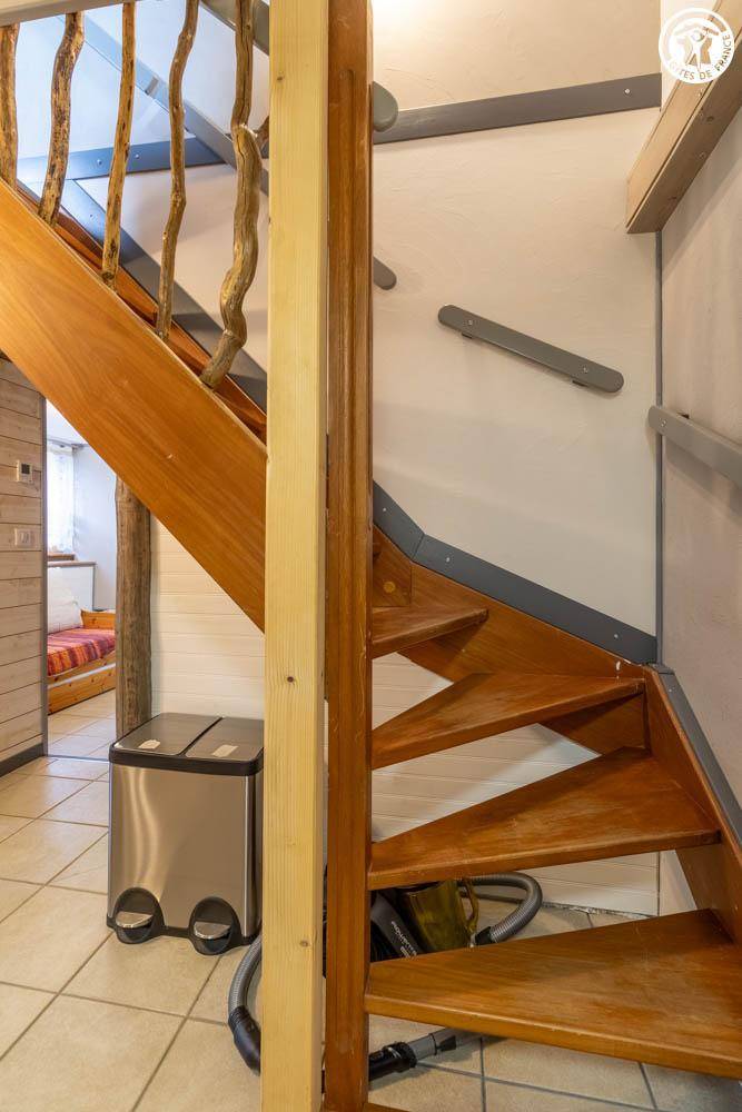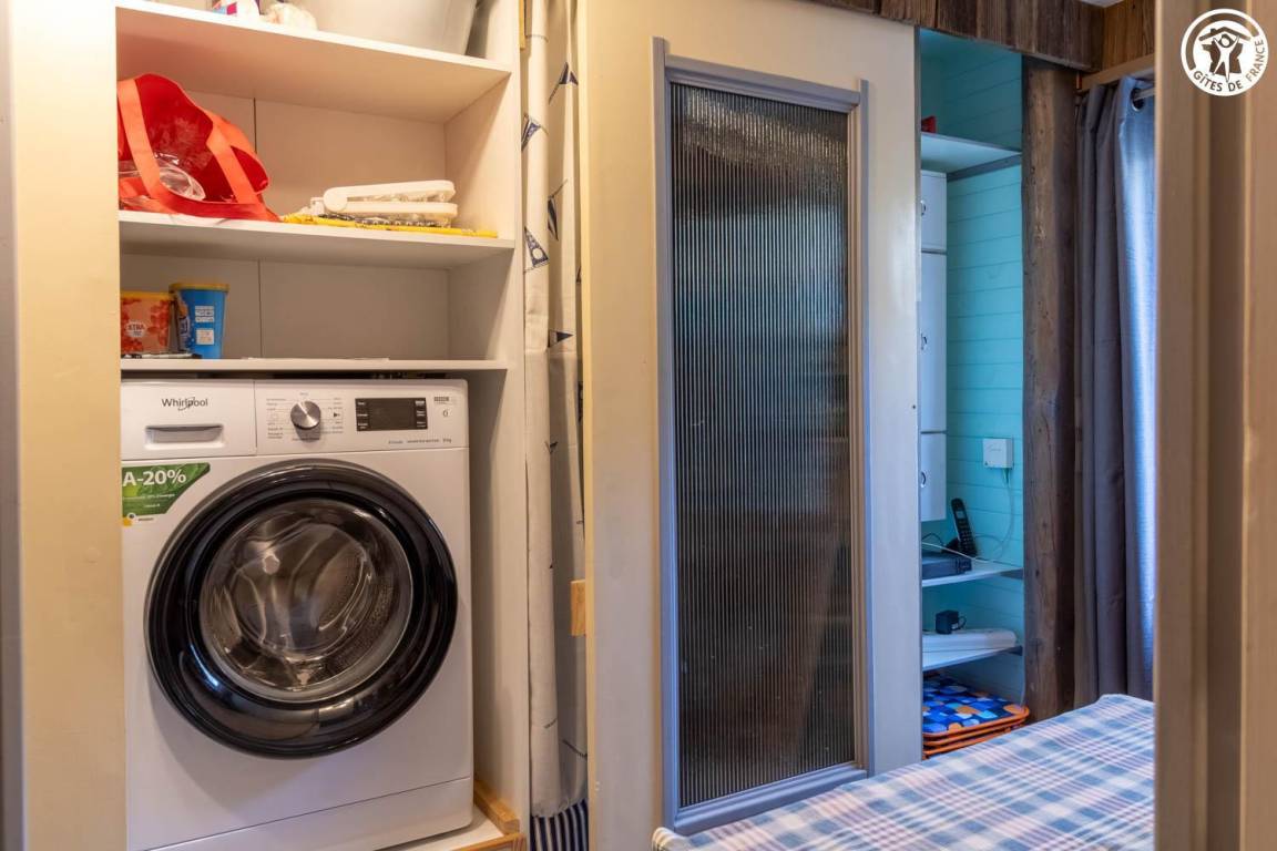 Dieses zweistöckige Ferienhaus verfügt über zwei separate Eingänge (Erdgeschoss oder Obergeschoss). Im Obergeschoss befinden sich ein Wohnzimmer mit Kochnische und ein durch einen Vorhang abgetrenntes Schlafzimmer (zwei Einzelbetten 90x190 cm / ein Doppelschlafsofa). Das Erdgeschoss bietet ein Schlafzimmer (ein Schlafsofa mit zwei Einzelbetten und ein weiteres Ausziehbett) mit angrenzendem Duschbad und separatem WC (mit Zerhackertoilette). Außerdem gibt es einen Balkon und einen privaten Außenbereich.