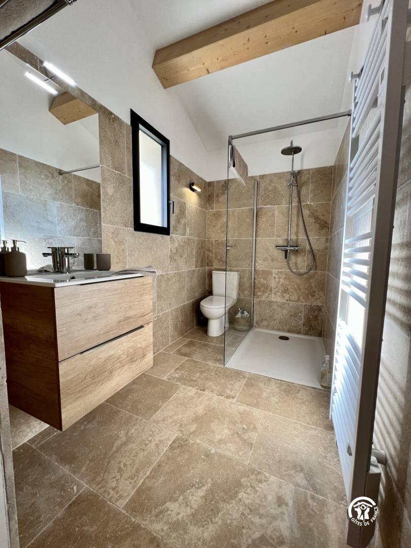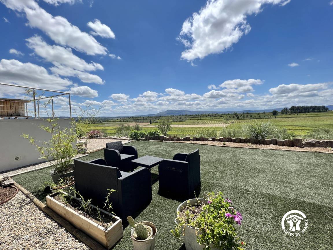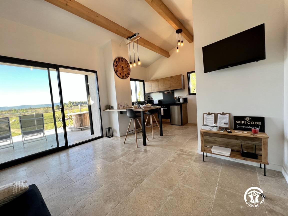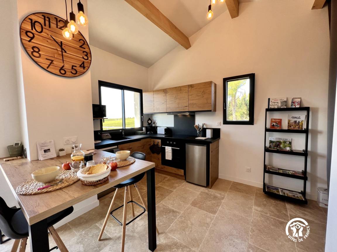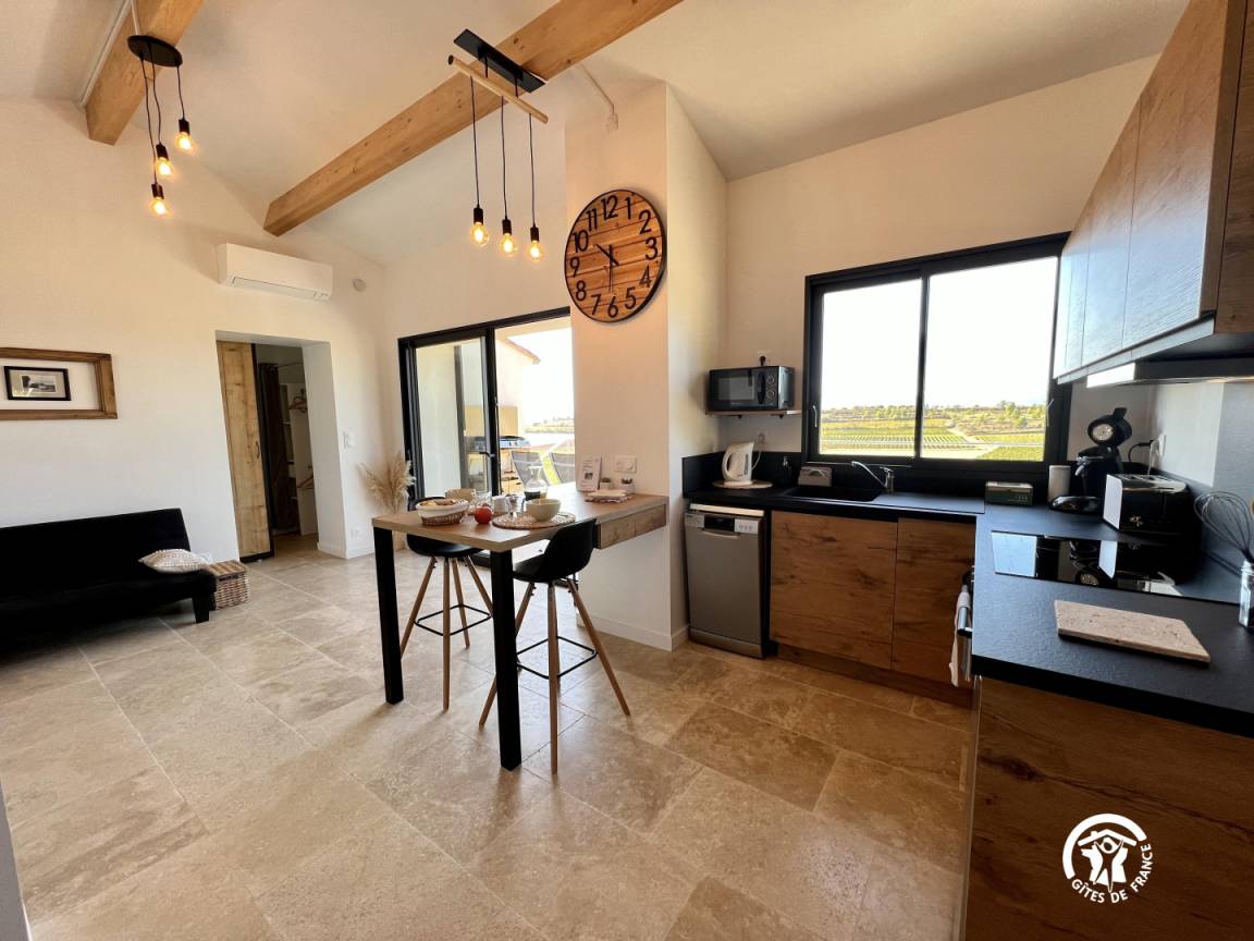 „We spent a wonderful week in this beautifully and tastefully restored gite with every modern comfort we could wish for. The view from the sunny terrace over the vineyard to the mountains took our breath away. The gite was spotlessly clean and well-equipped and was of a high standard. The gite was private and quiet. The owners made us feel very welcome and were so helpful. Everything was laid out beautifully and thoughtfully for our arrival. Our dog loved our walks in the vineyard. There is so much to do in the area for dog owners. This gite is a real gem and we can't wait to return.“