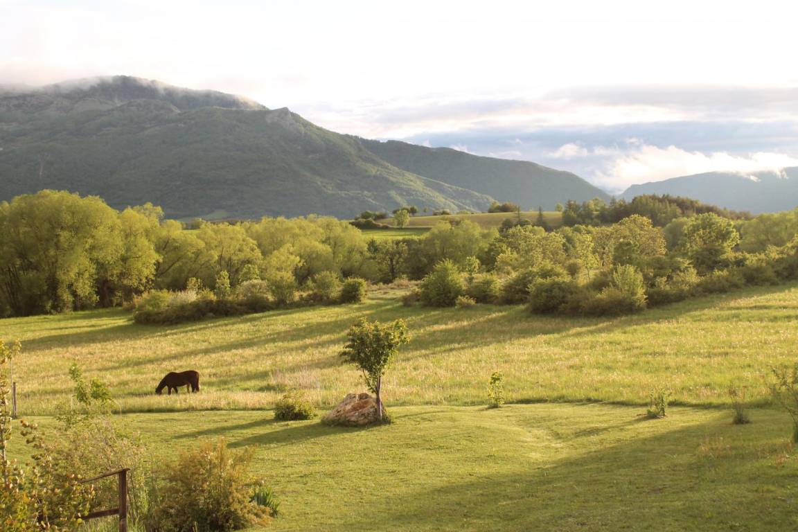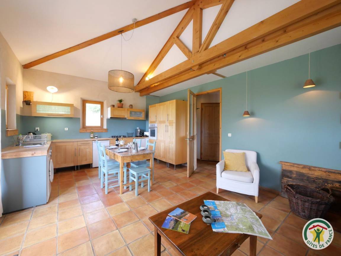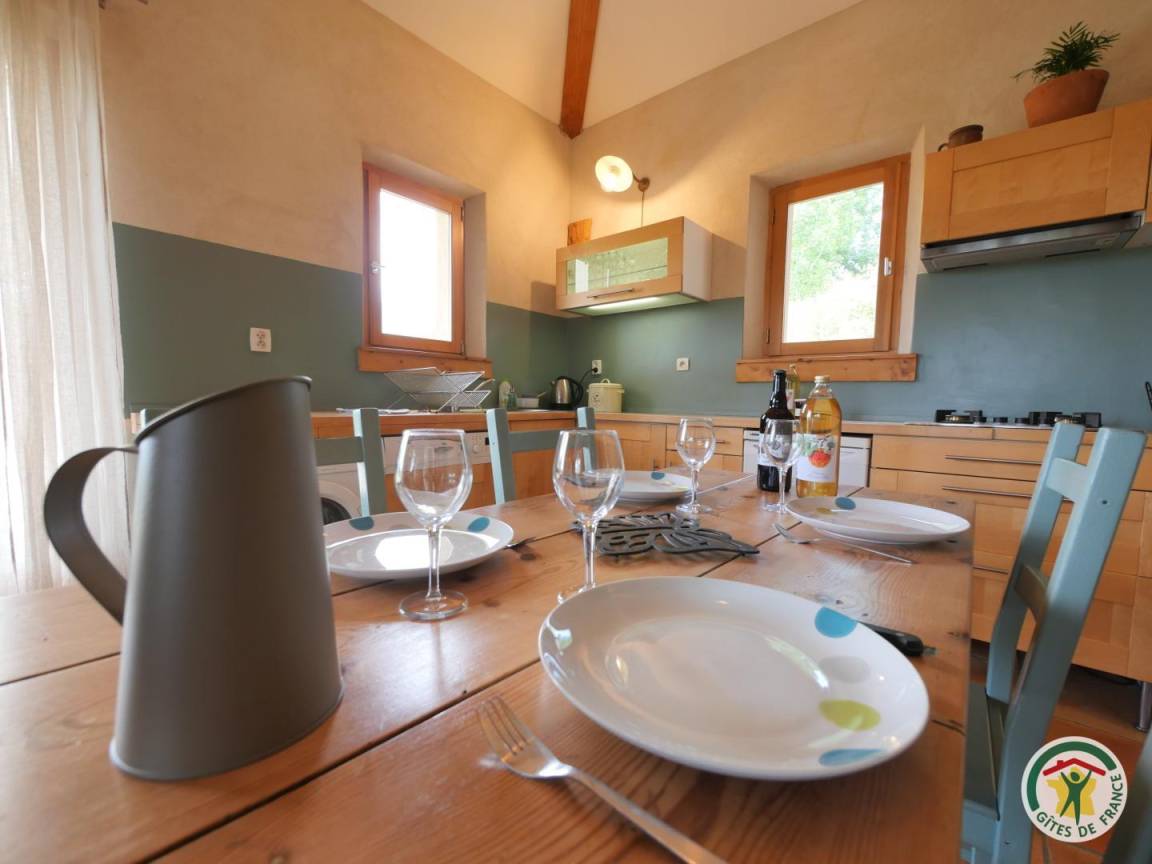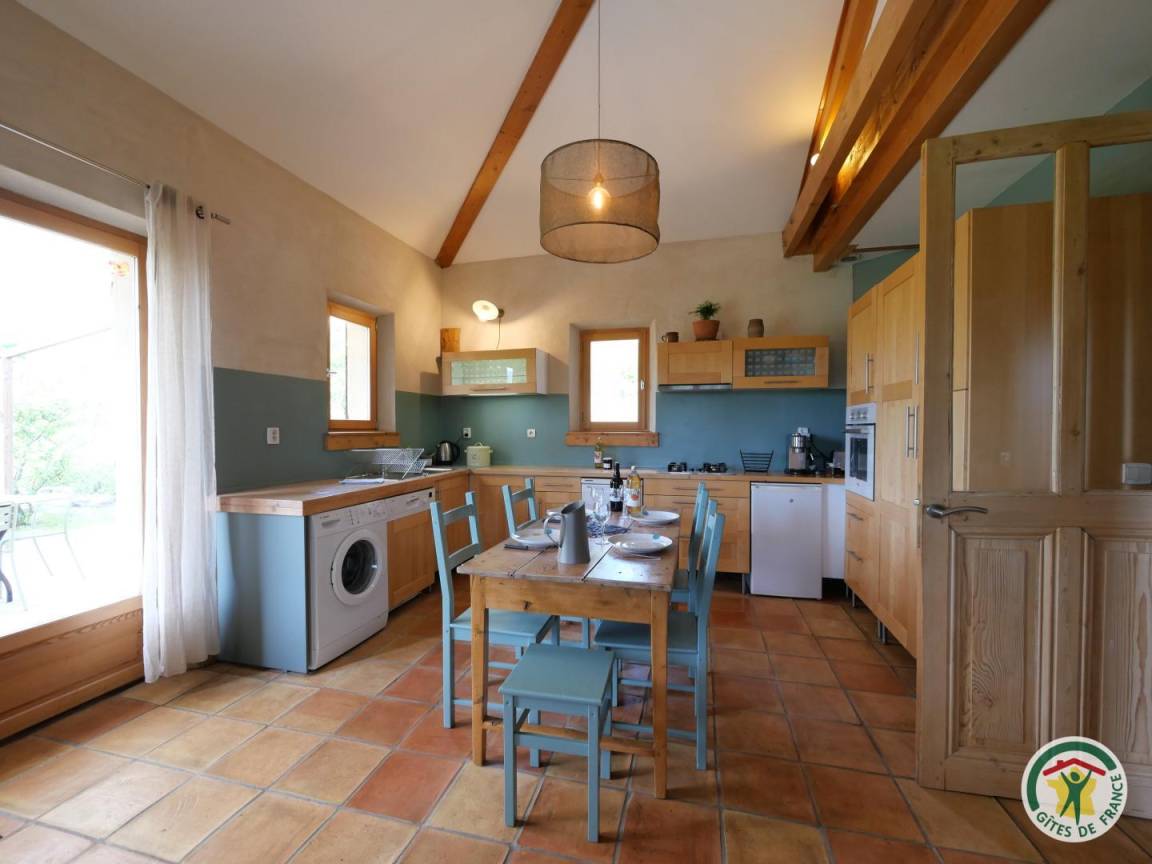 Auf dem Lande mit Blick auf die massiven der Dauphiné, Bauernhaus, die Wahrung der Traditionen und ökologischen Ansatz (Ziegel, Zellulose, Watte, Hanf...) kombinieren. Ferienhaus der Wohnung des Besitzers und ein weiteres Ferienhaus. Privater Eingang von der Terrasse. Spielplatz. Wanderwege, Mountainbike... Wohnzimmer, integrierte Küche (l-Leinen, l-Gerichte), entspannen Sie sich rund um den Herd, TV, DVD-Player, Internet-Zugang-Ecke. 1 Schlafzimmer mit 1 Bett 160 und 1 Bett 1 pers. Mezzanine. 1 Zimmer mit 4 Betten 1 s. 2 Mezzanin. Badezimmer, wc. Bo. & solar Warmwasser. Gartenmöbel, Grill. Bettwäsche, Handtücher werden gestellt. 600 m der Schotterstraße zum Schluß Zugang zur Hütte.
