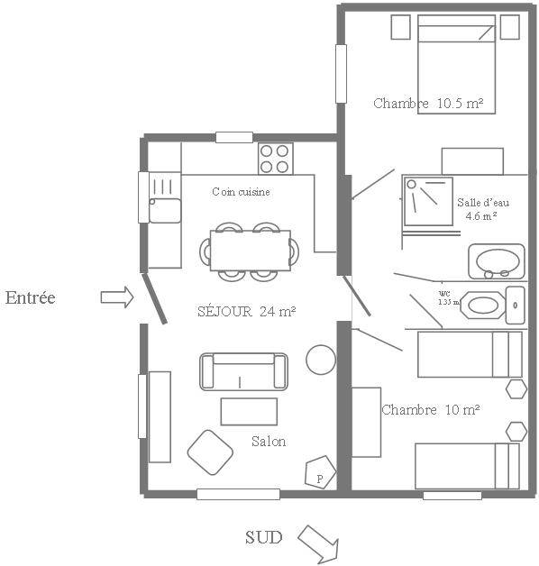 55 m² Gîte ∙ 2 Schlafzimmer ∙ 4 Gäste