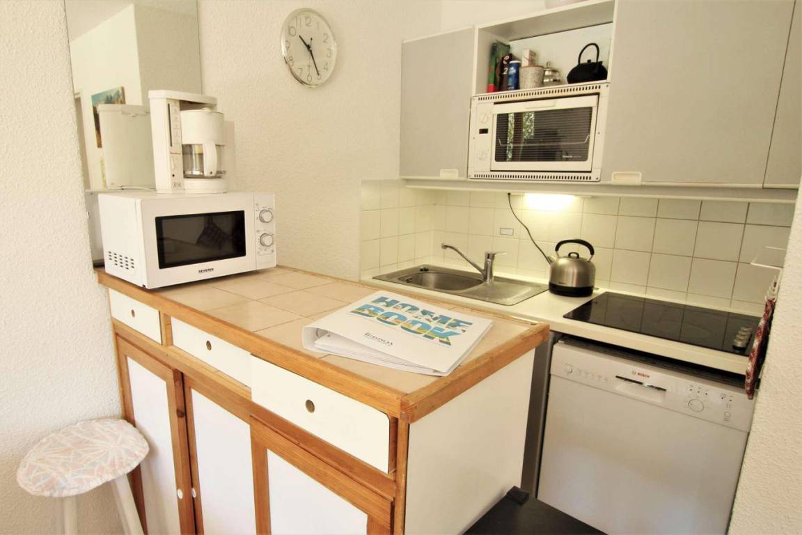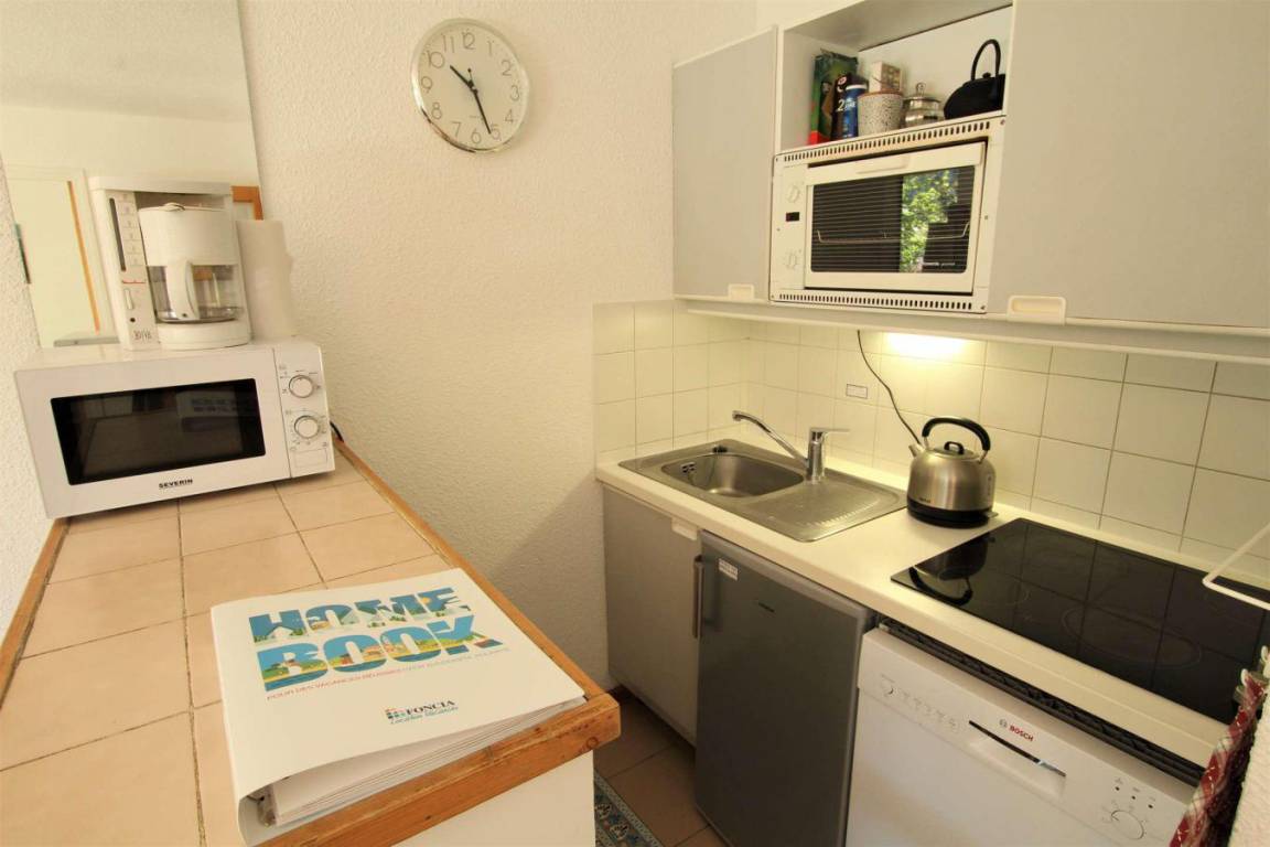 Fläche von ungefähr 42 m². 2te Etage. Orientierung : Süd. Wohnzimmer mit Klappschlafcouch. Schlafzimmer mit Doppelbett. offener Schlafbereich mit 2 Stockbetten (90). Küche mit kleiner Backofen mit Mikrowellenfunktion, Geschirrspülmaschine, kleiner Backofen, Herdplatten, Kühlschrank. Badezimmer mit Badewanne. separates WC. Balkon. Bügeleisen. Die oberen Betten sind nicht für Kinder unter 6 Jahren geeignet.