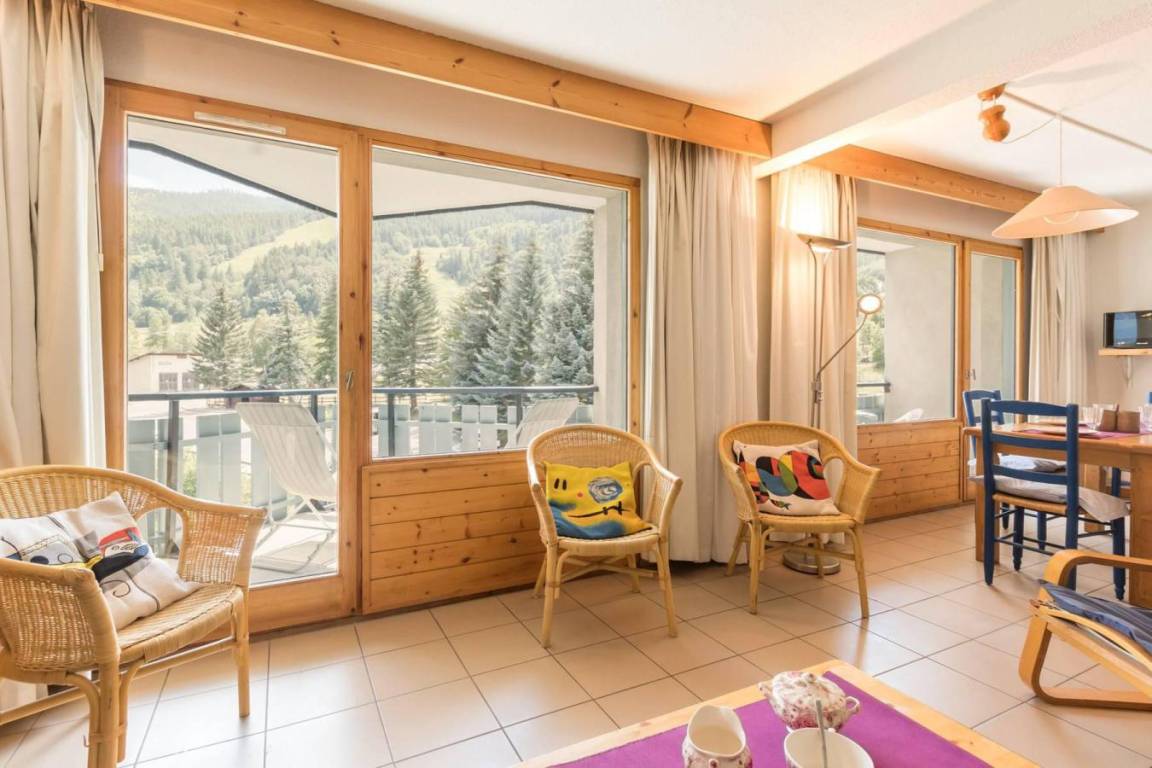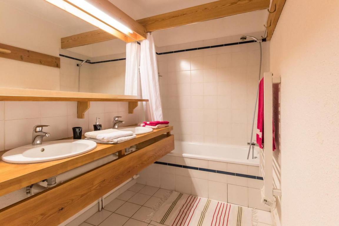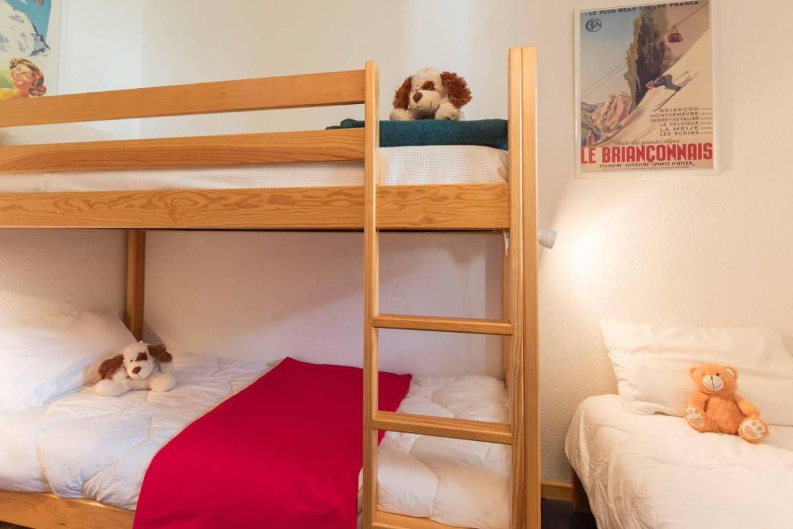 Fläche von ungefähr 55 m². 3te Etage. Orientierung : Süd. Wohnzimmer mit einfache Klappschlafcouch (simple). Schlafzimmer mit Einzelbett (90), 2 Stockbetten (90). Schlafzimmer mit 2 Einzelbetten (90). Küche mit Kaffeemaschine, kleiner Backofen mit Mikrowellenfunktion, Geschirrspülmaschine, 4 Herdplatten, Kühlschrank. Badezimmer mit Badewanne. separates WC. Balkon. Bügeleisen. Die oberen Betten sind nicht für Kinder unter 6 Jahren geeignet.