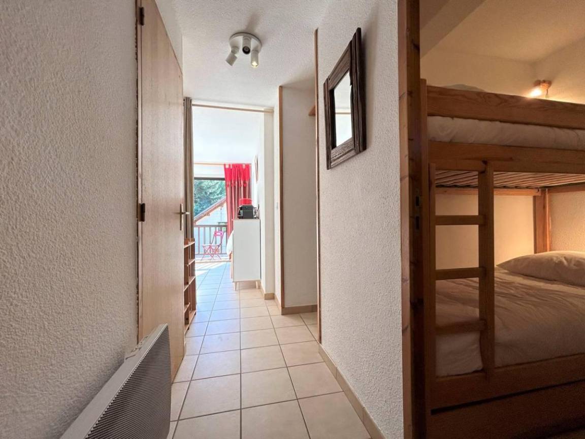 Fläche von ungefähr 69 m². 1te Etage. Orientierung : Süd-West. Wohnzimmer. offener Schlafbereich mit 2 Einzelbetten (80x190). Schlafzimmer mit Doppelbett (140x190). Kochnische mit Fonduegerät, Raclettegerät, Wasserkocher, Kaffeemaschine, Backofen, kleiner Backofen mit Mikrowellenfunktion, Toaster, Waschmaschine, Geschirrspülmaschine, 2 Induktionsherdplatten. Badezimmer mit Badewanne, Haartrockner. separates WC. Balkon.