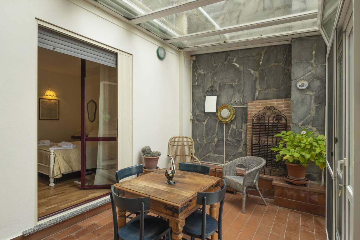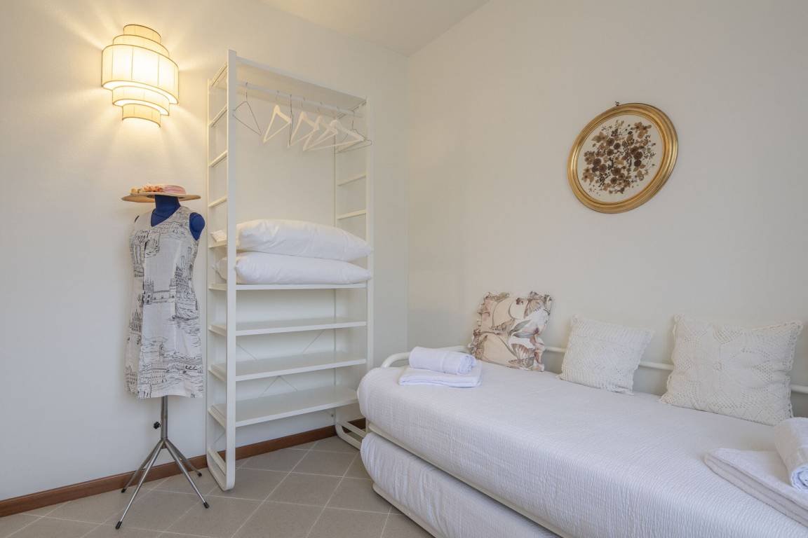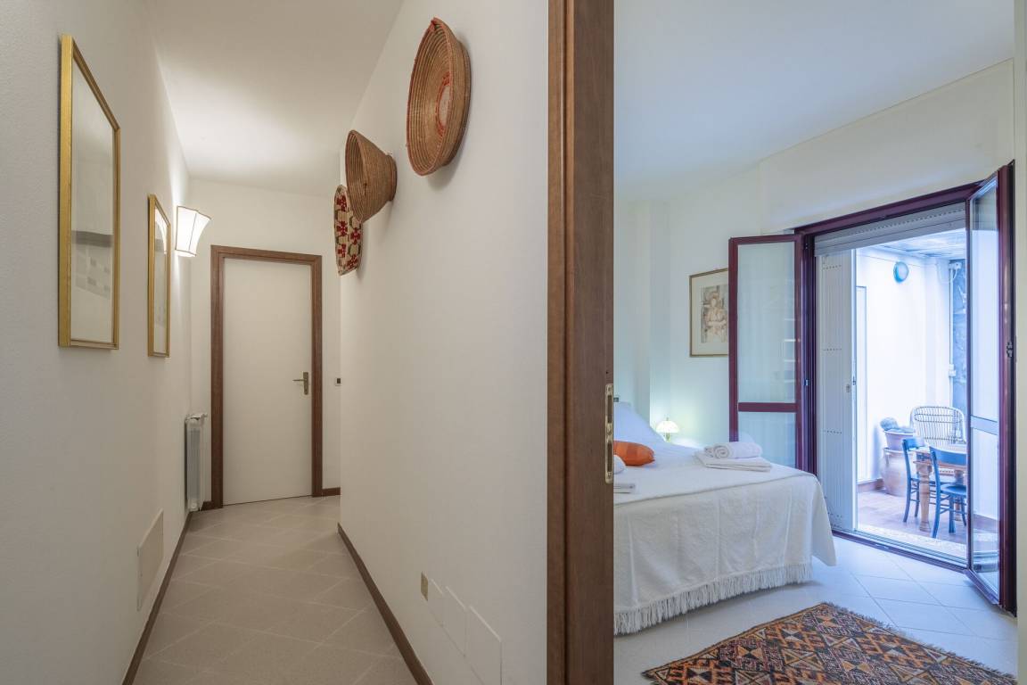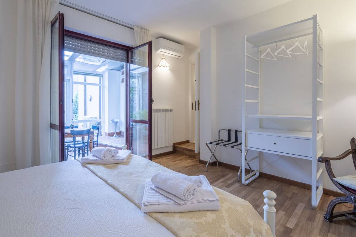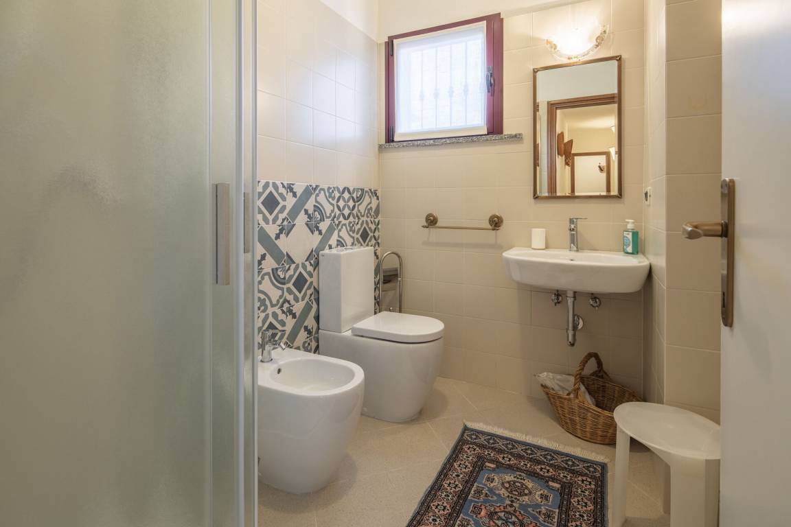 Schlafzimmer mit Bad: Doppelbett, WiFi Internet, Klimaanlage, Waschbecken, WC, Bidet, Dusche, Fön, Ausgang auf die Veranda.