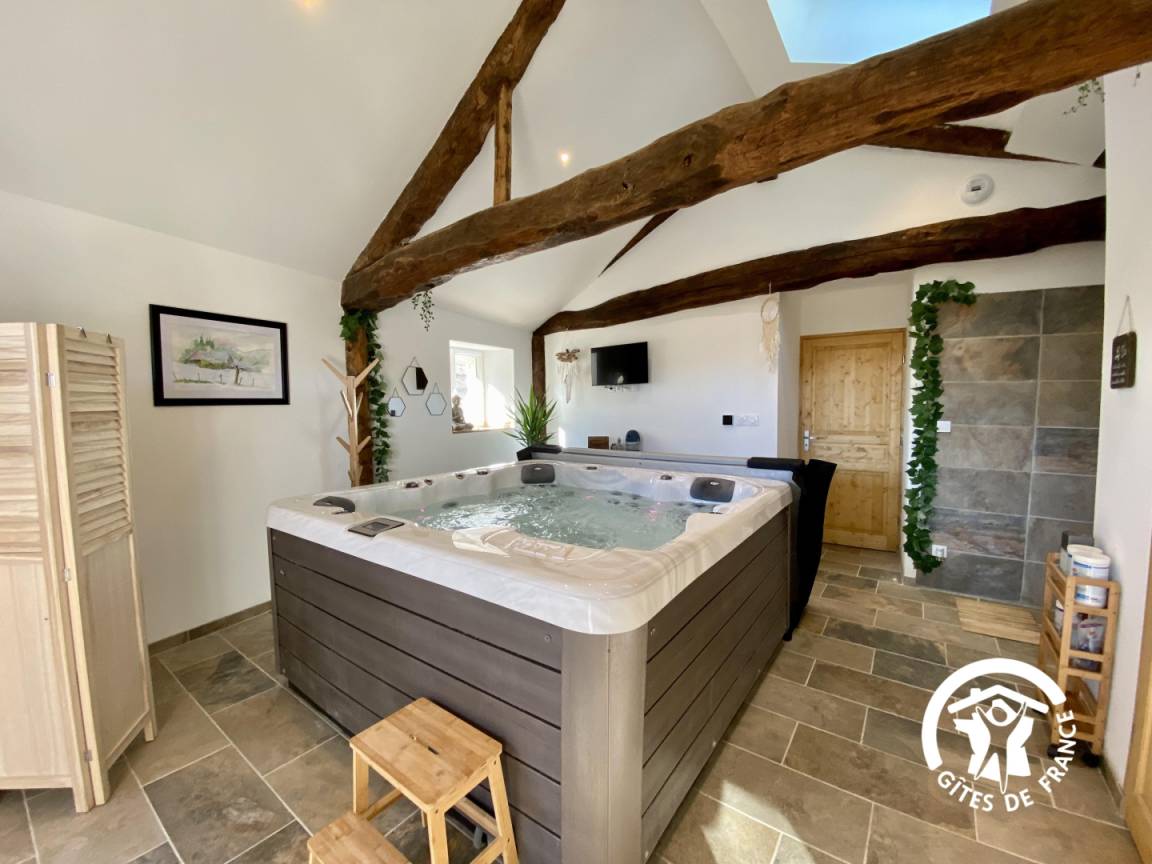 „Nous avons passé une très belle soirée dans la gîte de Carole. Le jacuzzi est un vrai plus et permet de se relaxer en fin de journée dans le calme de la campagne. Je recommande ce gîte !“