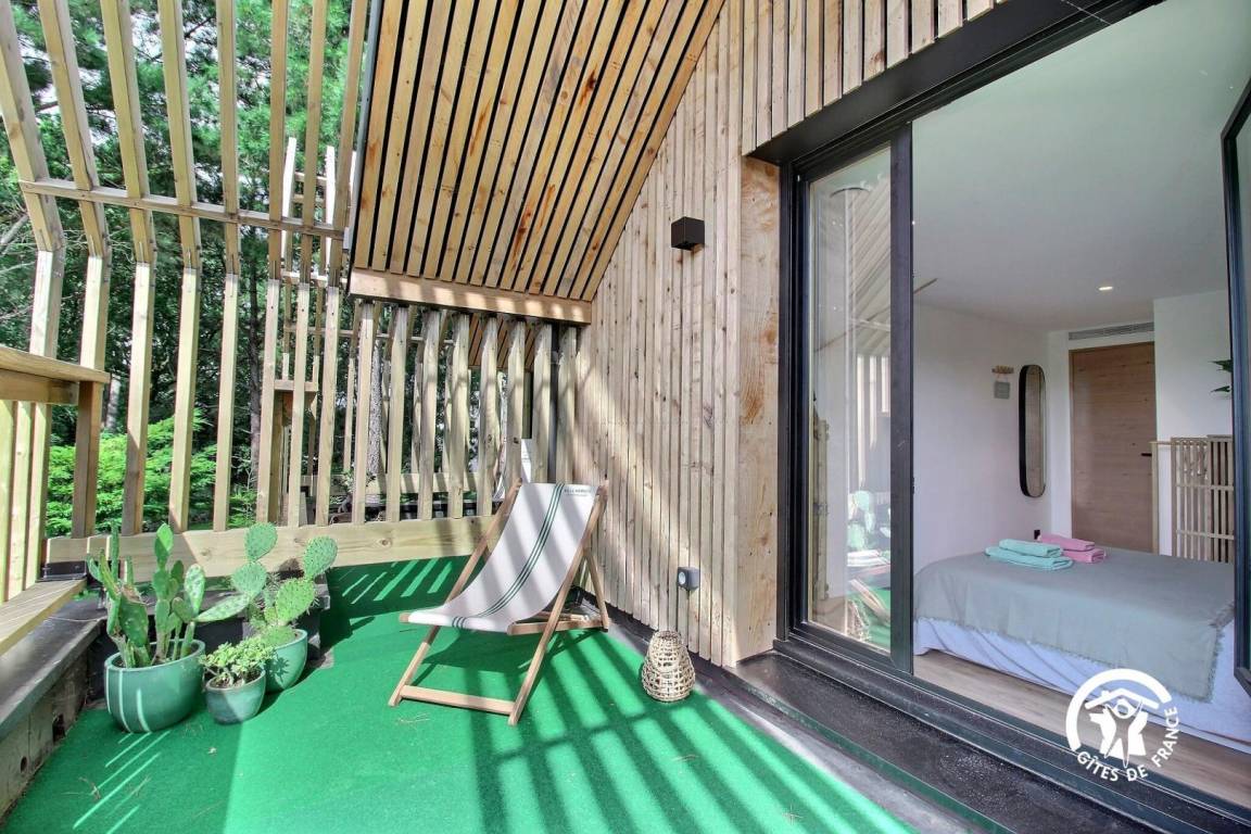 - Ein Schlafzimmer mit 160x200 Bett + Badezimmer mit Badewanne + privater Terrasse