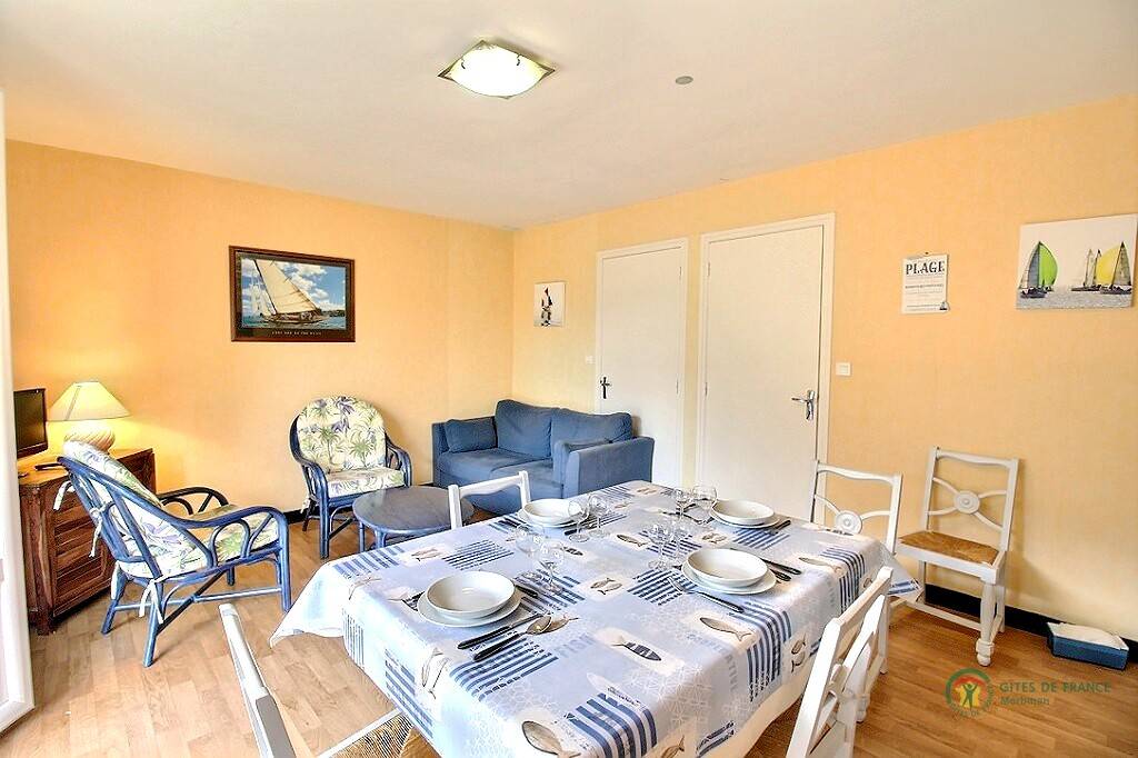 This cottage is ideally located 80m from the beach, between Carnac and la Trinite-sur-Mer.-Il offers you on the ground floor an entrance, a living room of 20m ² opening onto the private terrace, a kitchen, a storeroom.-On the 1st floor, 3 bedrooms (a room with 1 bed 140 / a room with 2 beds 90, a room with 1 bed 90), a bathroom, wc.Outside, relax after beach days on the terrace or in the shared garden.Parking in the sharedn garden of 600 sqm.Gîte adjoining gîte 2588, located 80 meters from the sea (Le Men-Dû) between La Trinité-sur-Mer and Carnac.