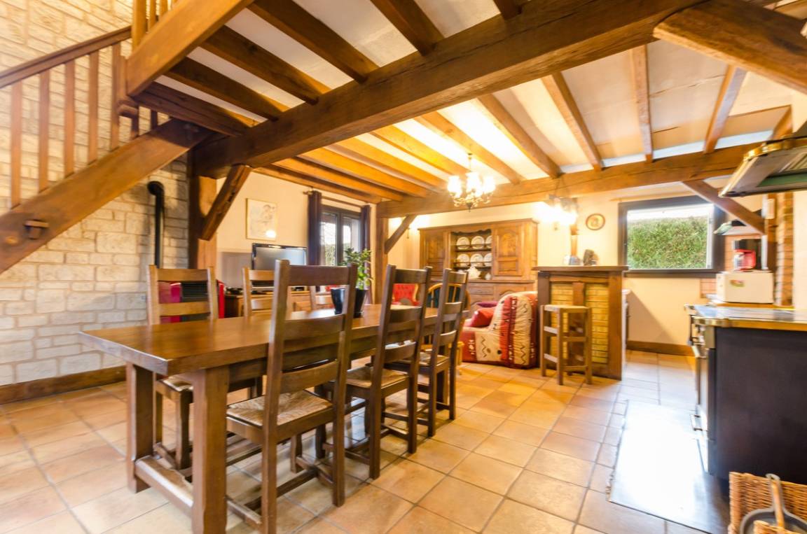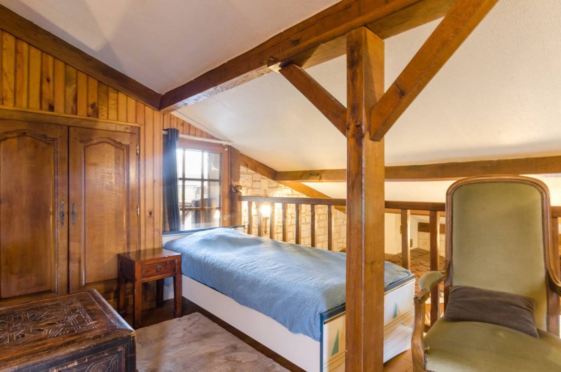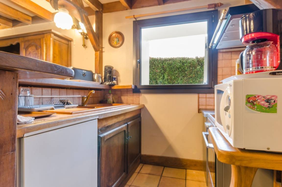Im Erdgeschoss: Kochnische, geräumiges Esszimmer/Salon mit Pizzaofen. Im OG: 1 Zimmer im Mezzanin (1 Einzelbett), Badezimmer, WC. Möglichkeit einer weiteren Schlafstelle auf dem Sofa. Waschmaschine gemeinsam, Gebühren inklusive.