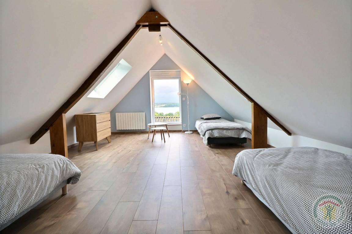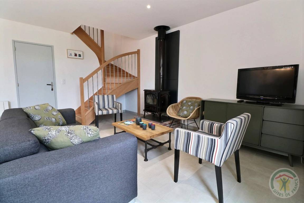 Im Erdgeschoss: ein Wohnzimmer mit offener Küche zum Wohnzimmer und ein Wohnzimmer mit Ofen (Holz wird angeboten), eine Spülküche mit Waschbecken, ein WC mit Waschbecken. Im 1. Stock: ein Schlafzimmer mit einem 140x190-Bett und ein Schlafzimmer mit einem 160x200-Bett, ein Badezimmer mit Dusche und Badewanne, eine separate Toilette. Im 2. Stock: ein Schlafzimmer mit 2 Einzelbetten und ein Duschbad mit WC. Parkplatz auf dem Grundstück. Die Gîte grenzt an eine andere Gîte (nicht bei Gîtes de France gelistet).