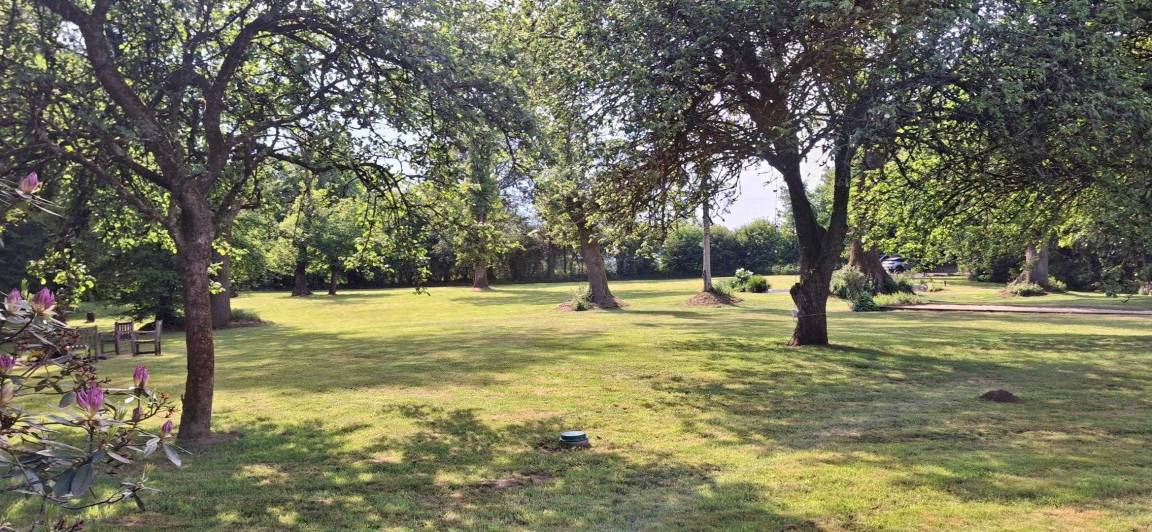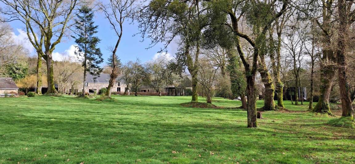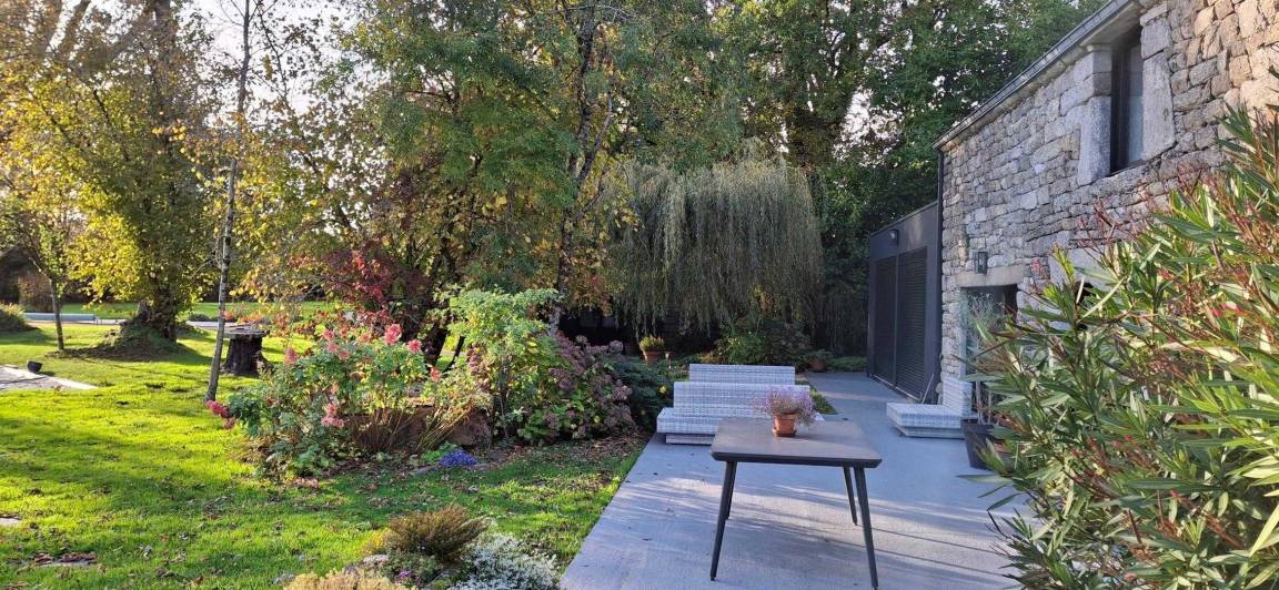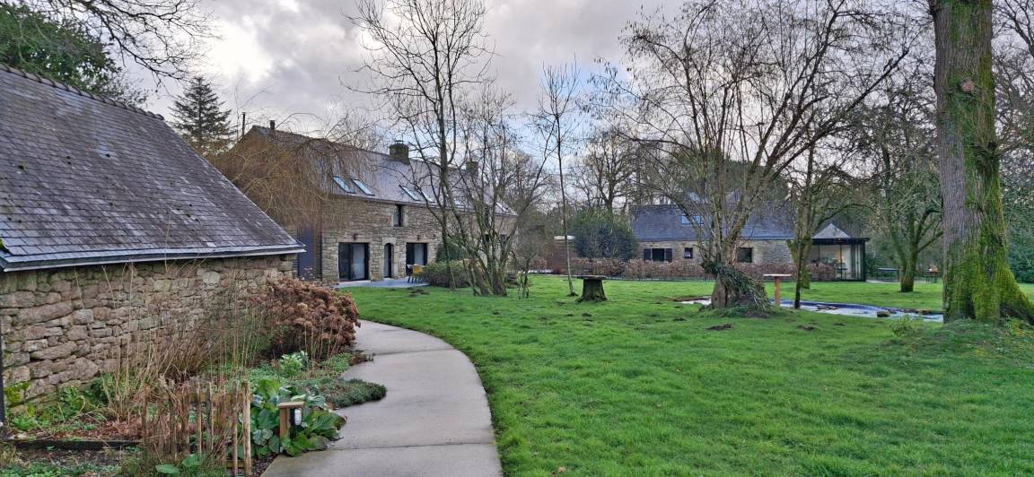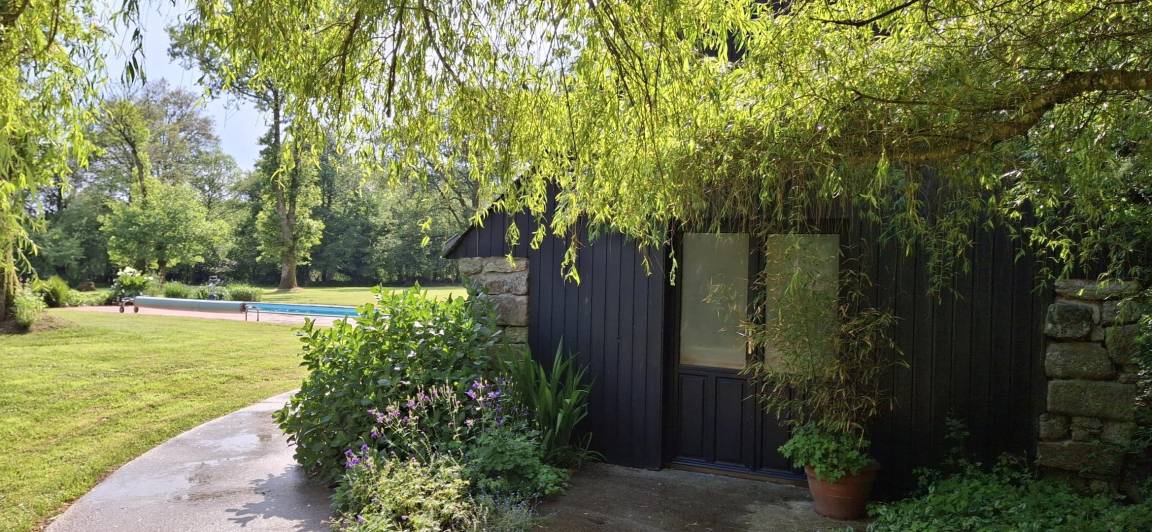 Eingebettet in einen ruhigen Weiler, auf einem Hektar großen, von alten Eichen und Apfelbäumen beschatteten Grundstück, bietet das Ferienhaus den idealen Rahmen für einen erholsamen Aufenthalt in der Nähe des Golfs von Morbihan. Die friedliche Natur lädt zum Entspannen ein.