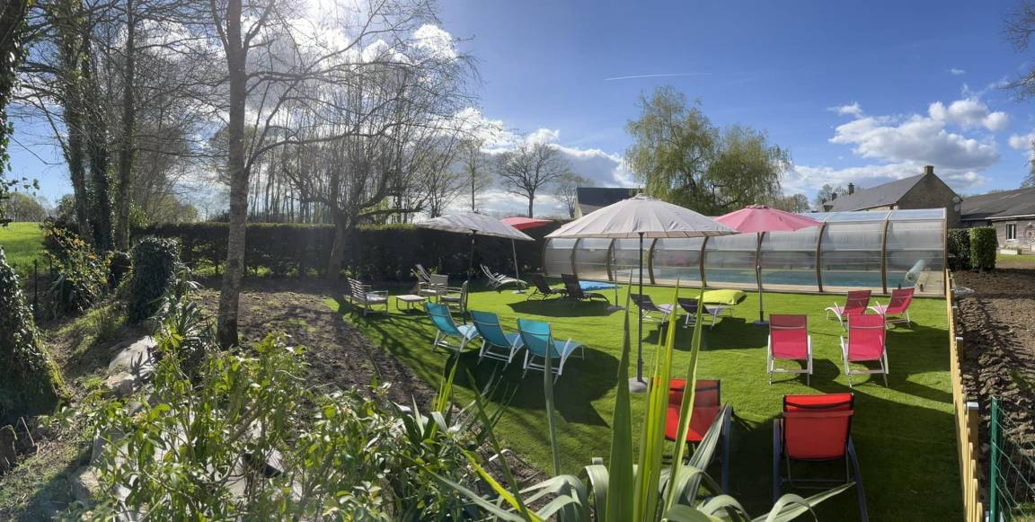 Beheiztes Hallenbad zugänglich von Anfang April bis Ende Oktober. Maße: 12m x 6m, Tiefe 0,90m bis 1,90m.