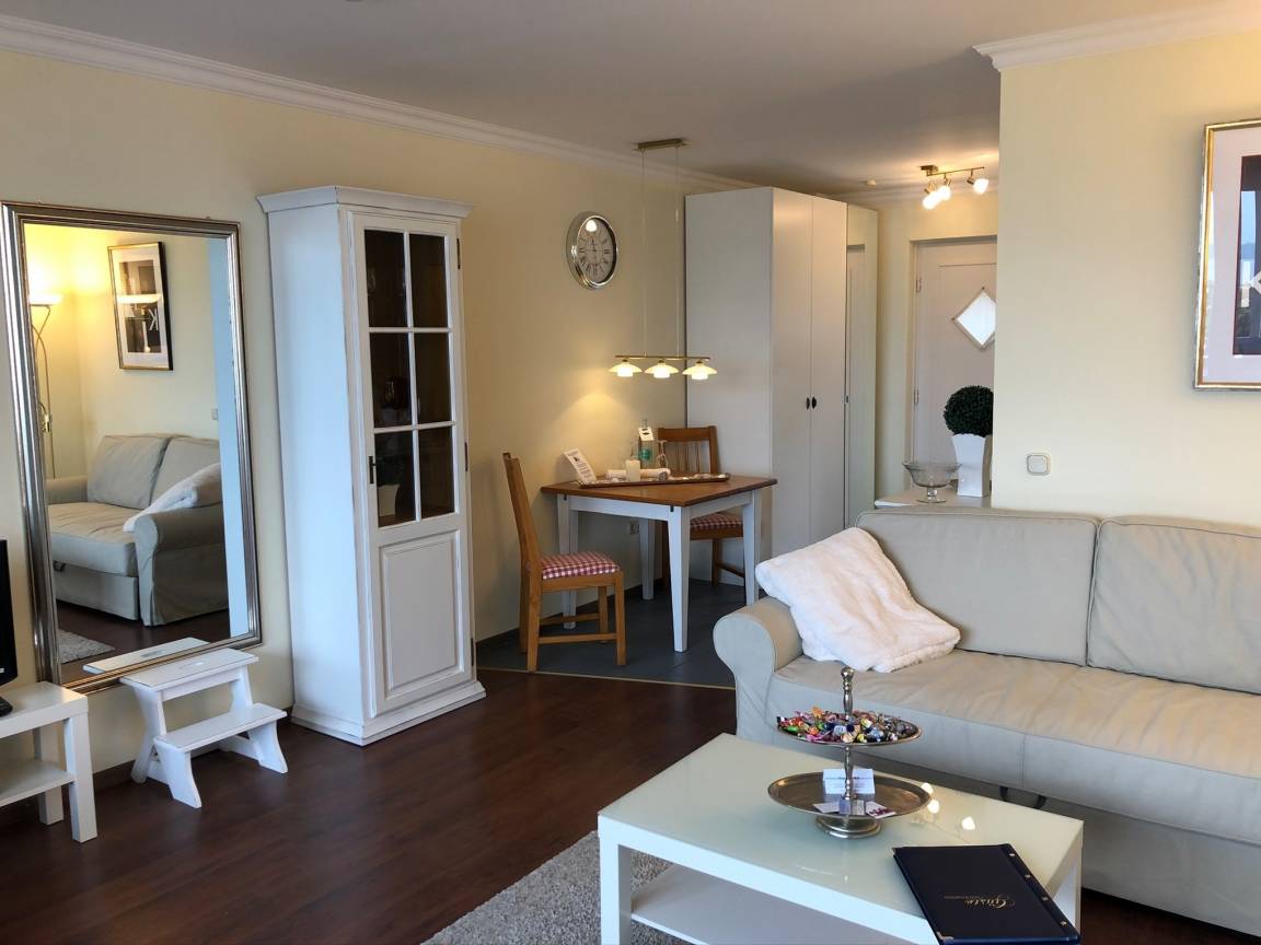 Appartement, das mit 2 Personen bewohnt werden kann. Es hat eine Größe von 32m². Sessel und Sofa sorgen tagsüber für Gemütlichkeit und das Schrankbett für eine angenehme Nachtruhe. Die Wohnung ist mit Liebe zum Detail eingerichtet.