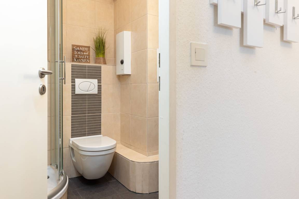 Die Schlüsselübergabe erfolgt über einen Tresor am Kraushaar Ferienwohnungen Servicebüro in der Strandstraße 10, 24235 Laboe.